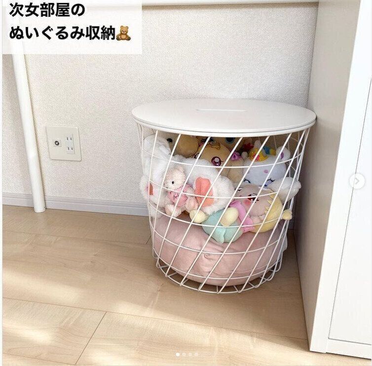 こちらはダイソーの550円商品のかごを活用した素敵なアイデア。ぬいぐるみたちがひょっこりと顔を出していてとてもかわいいです。出し入れもしやすく、片づけもはかどりそうです。