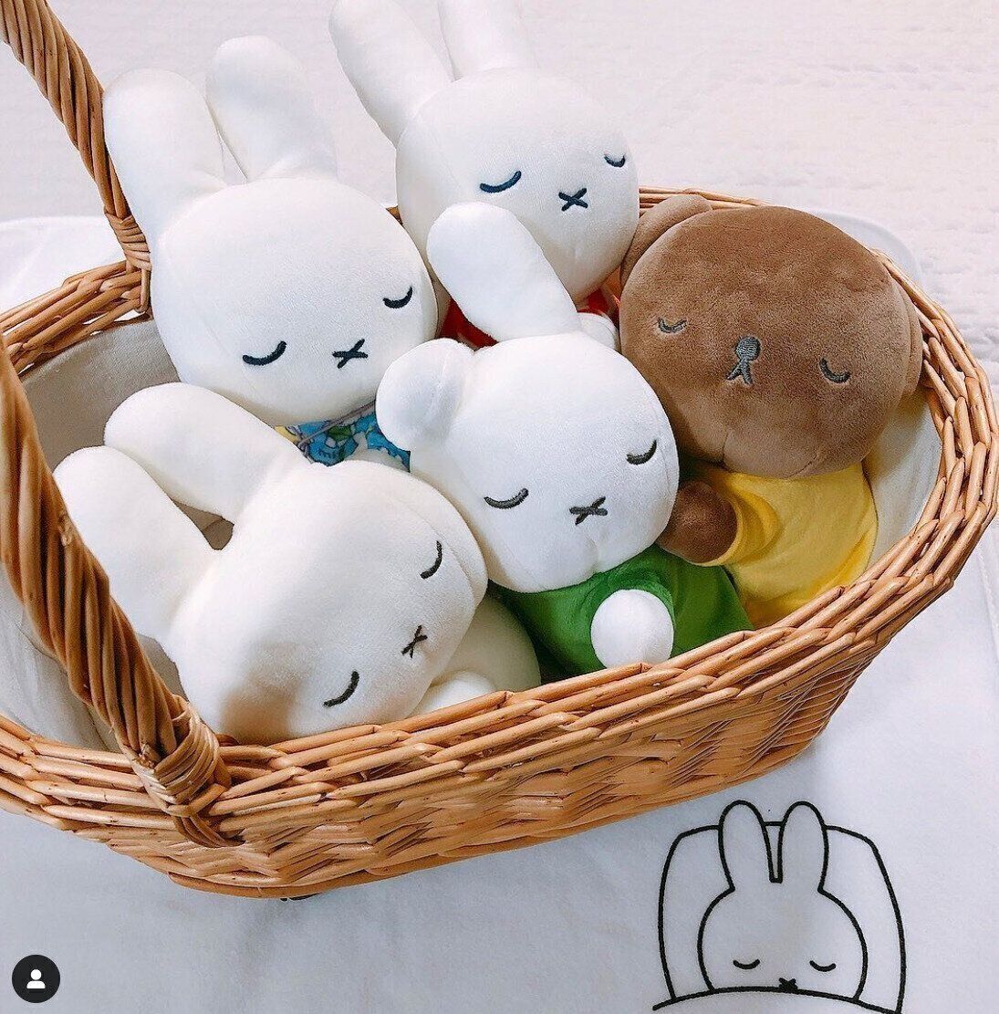 ミッフィーのイラストが描かれた収納ボックスにミッフィーのグッズを収納している例です。ミッフィーのぬいぐるみが顔をのぞかせていてかわいいですね!