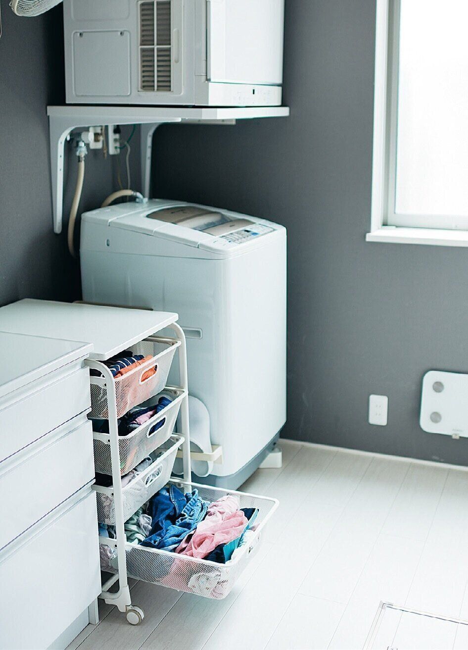 すぐにサイズアウトする子どもの下着や部屋着は量を減らして、ここに入る分だけに。お風呂から上がったら、ここから出して自分で着替えるので、ママが着替えを用意する手間なし。