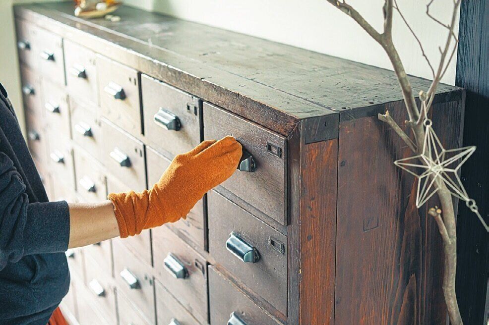 傷んだ靴下やタイツは、最後にもう一度洗濯して手にはめやすい長さにカット。引き出しの取っ手などこまかい部分も指でなぞれば汚れが落としやすい!