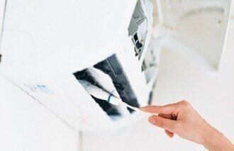 ペーパータオルを巻いてエアコン掃除に。