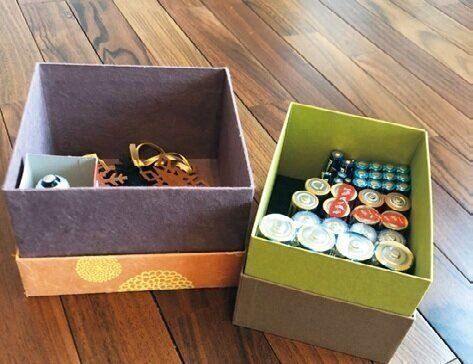 「きれいな箱は生かしたいので、迷子になりがちな電池などの収納として活用。ふたはしないほうが出し入れもスムーズ!」。