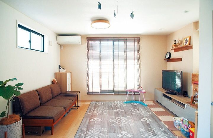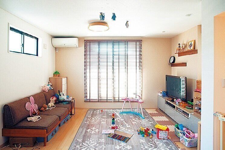 夫(42歳)、妻(42歳)、長女(6歳)、二女(2歳)の4人家族。夫婦ともに会社員。子どもの衣類、おもちゃがほぼ全部リビングにあり、すぐに散らかる家に。