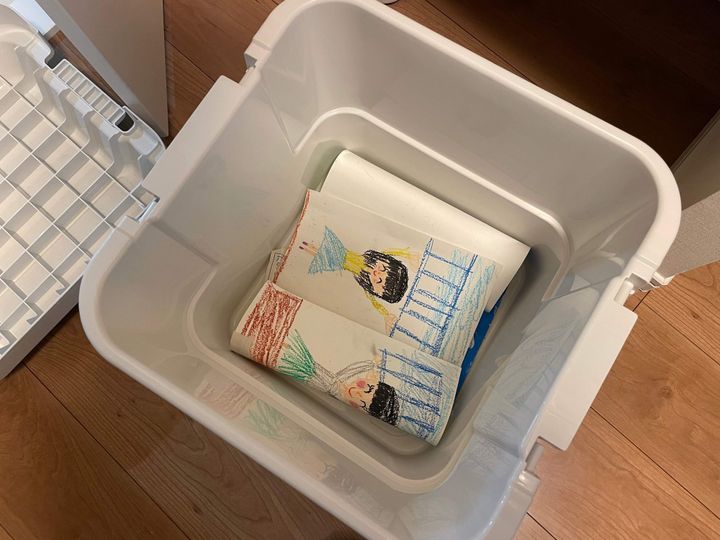 2階の納戸は、子どもたちの持ち帰ってきた作品ボックス入れに。