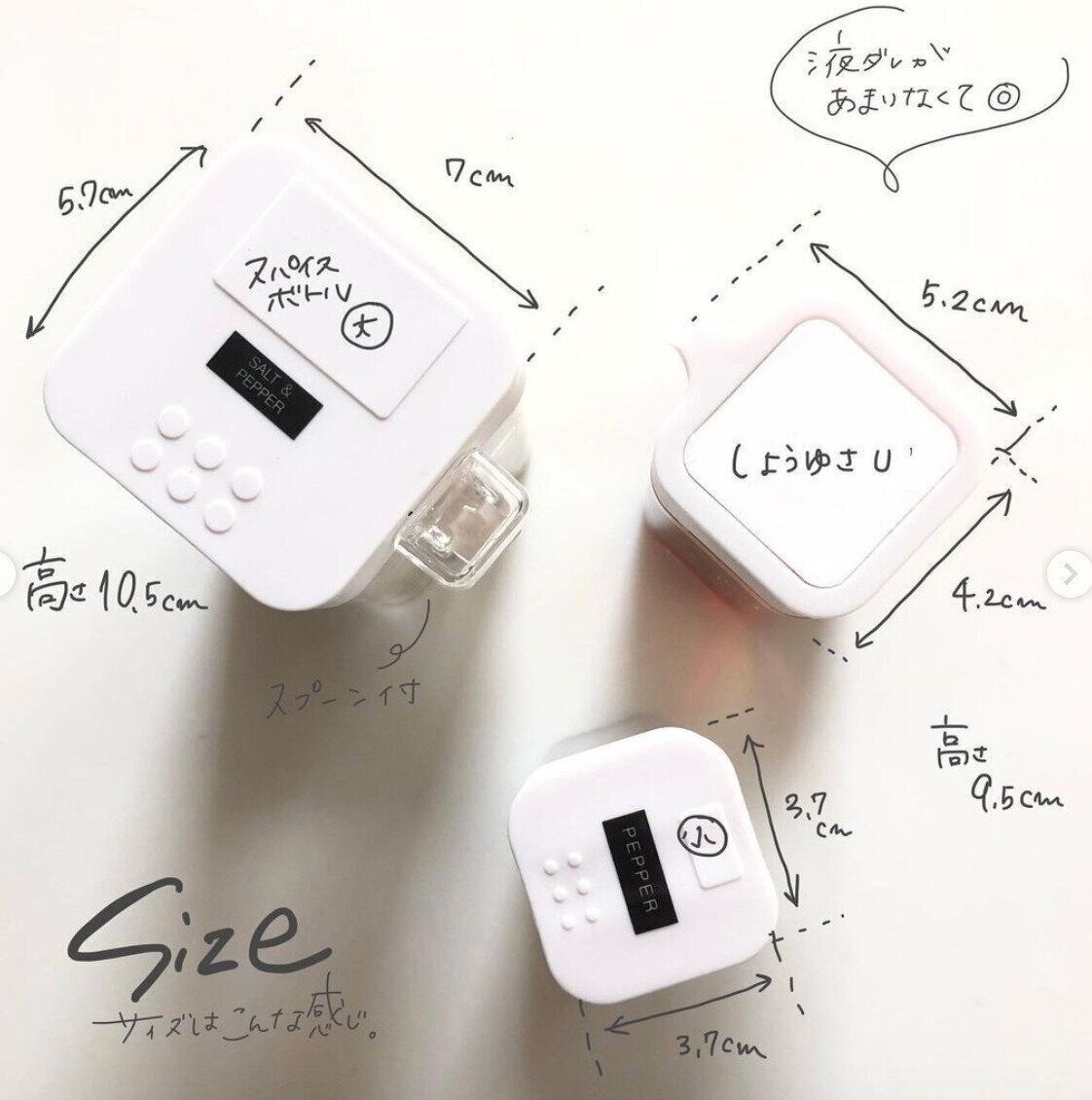 用途もしょうゆ差し用やお塩を入れるような小さめのもの、小麦粉を入れるような大きめのものなど同じシリーズでパターン違いがあるので揃えやすいことが選んだポイント!