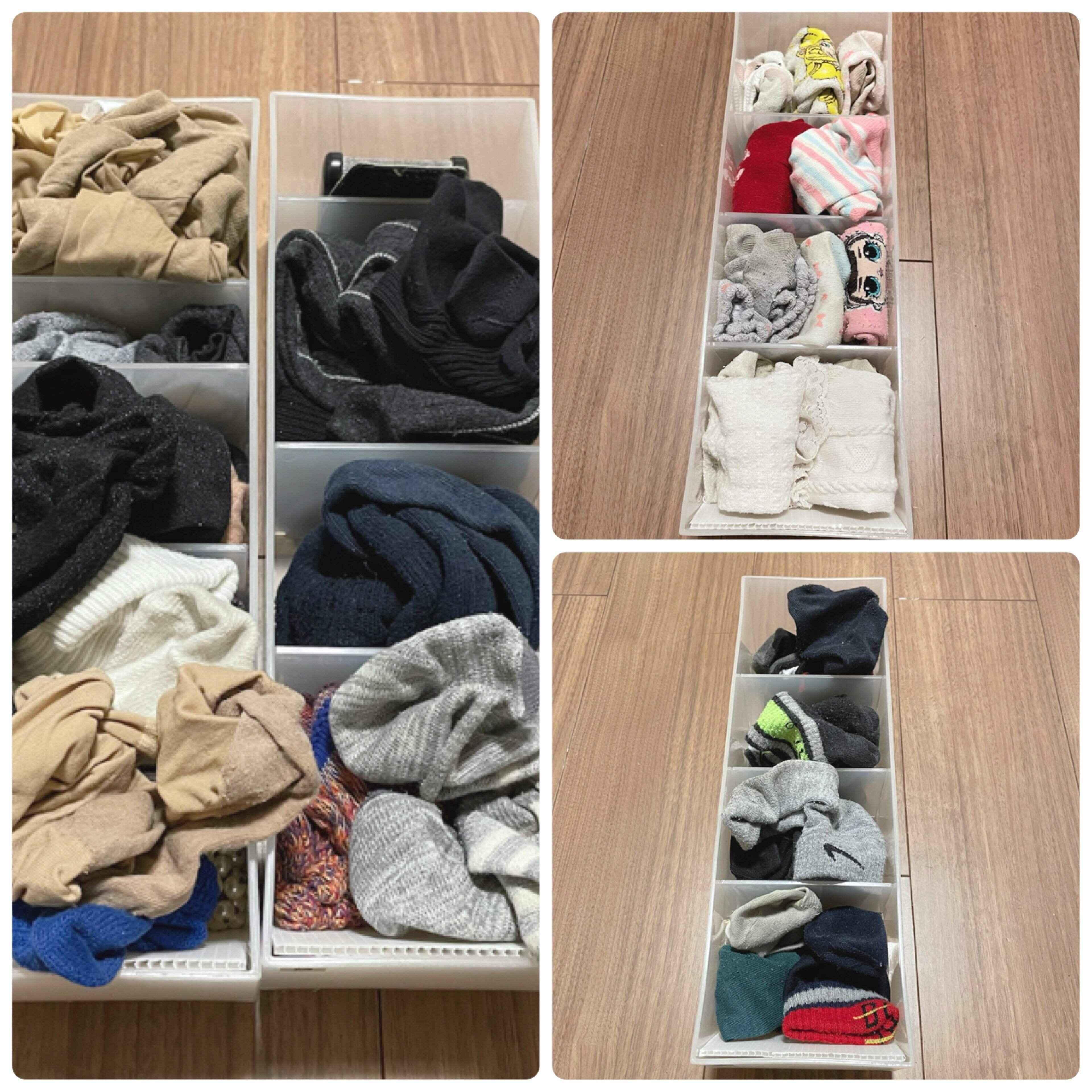 ビフォーアフターとともに、わが家の靴下整理法についてご紹介いたします。