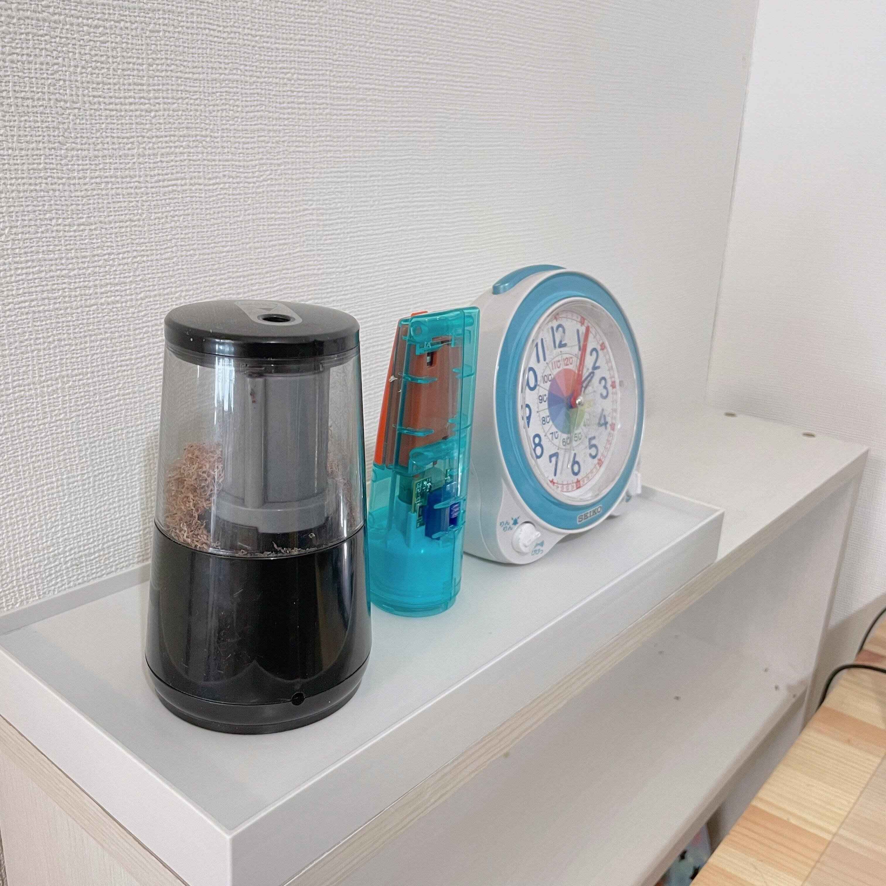 例えば、デスクの上に常時置いておきたい鉛筆削りや時計などを置く台としても使えます。