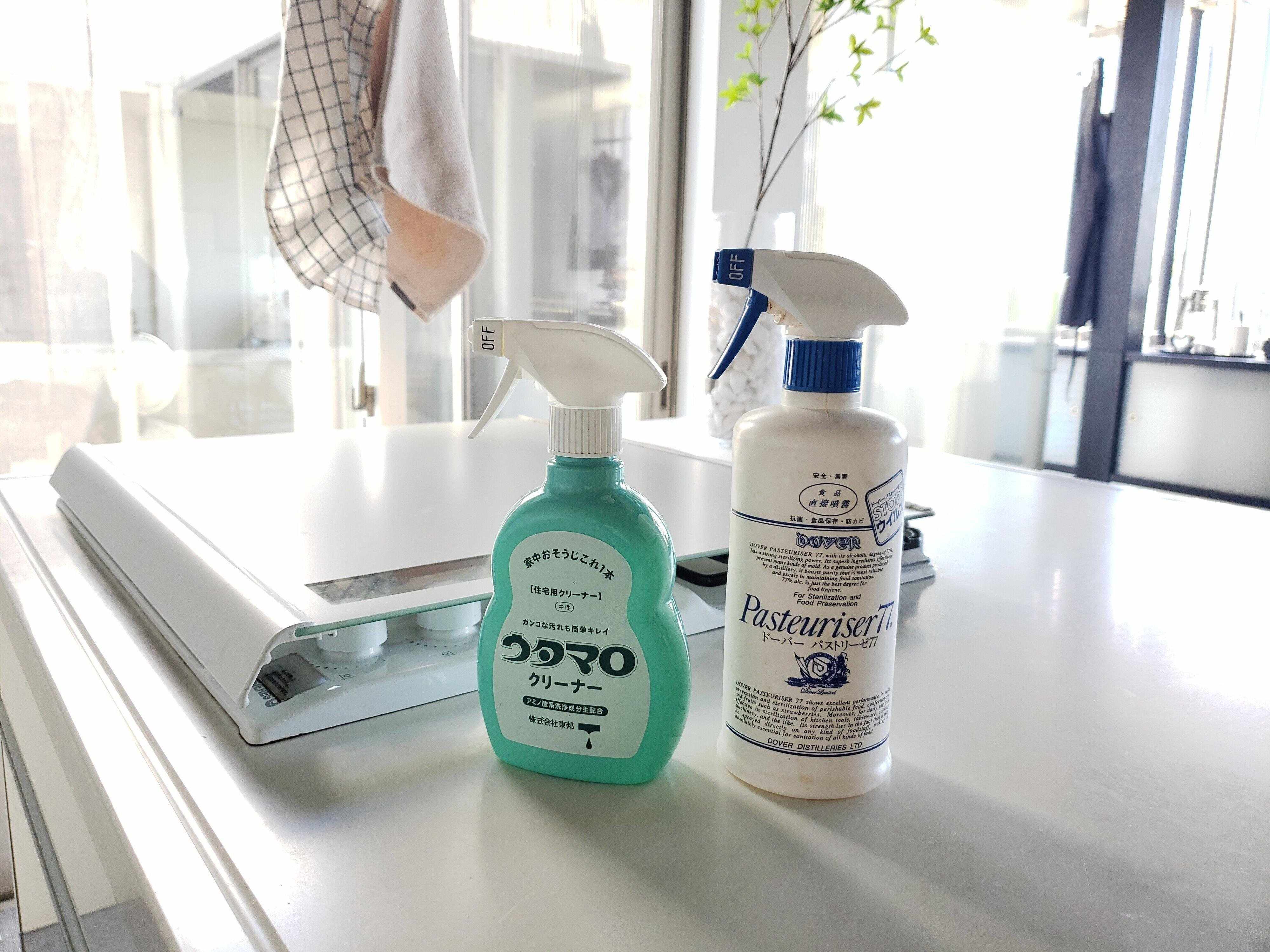 私はキッチンワークトップやコンロやレンジフードの掃除にはウタマロクリーナー。