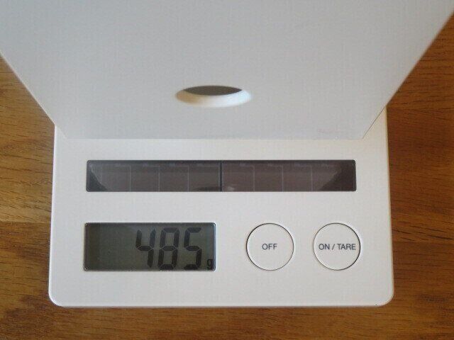 手で持った感じ、木製の方がずしりとくるのですが、実際にどのくらい重さが違うか気になり量ってみました。