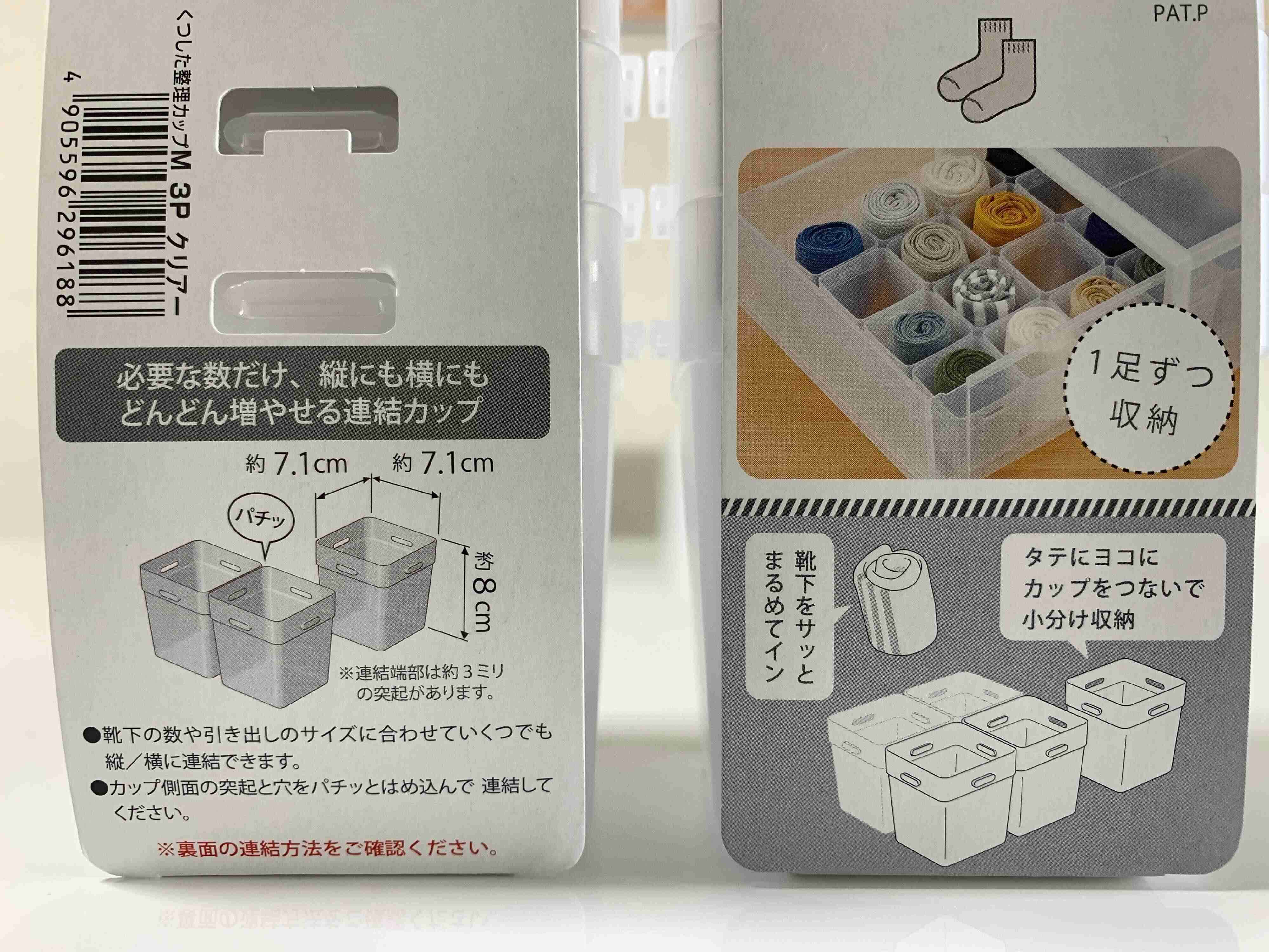 この「くつした整理カップ」は1個1個独立していているので自由に並び替えができます。