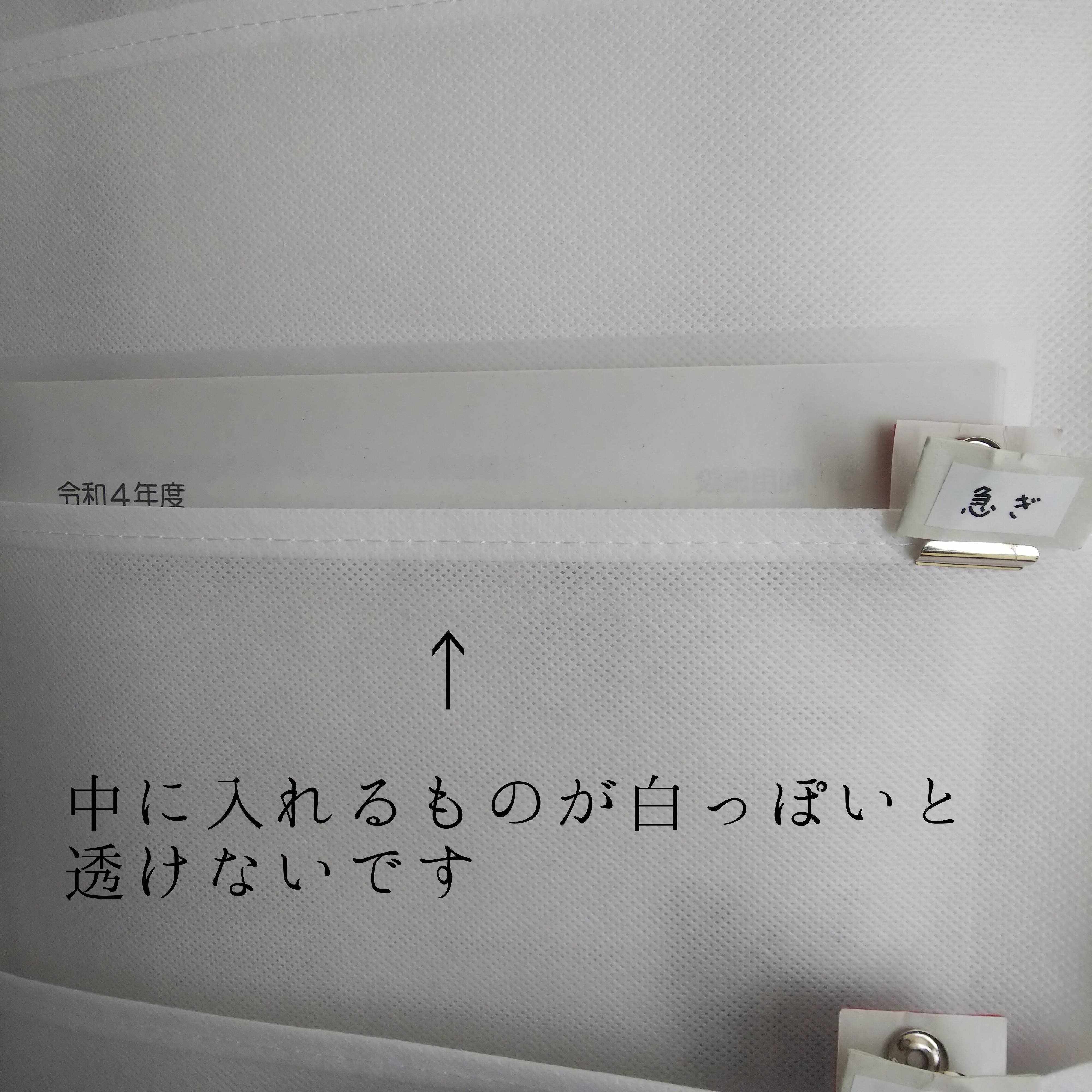 そこで使うのが「クリアファイル」!それぞれの収納ポケットにA4のクリアファイルを入れておいて、その中に郵便物を入れるようにします。そうすれば、次に出すときにクリアファイルごと出せば、出しやすく、下の方に埋もれることもありません。