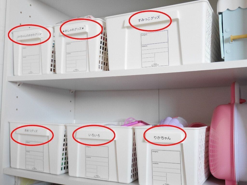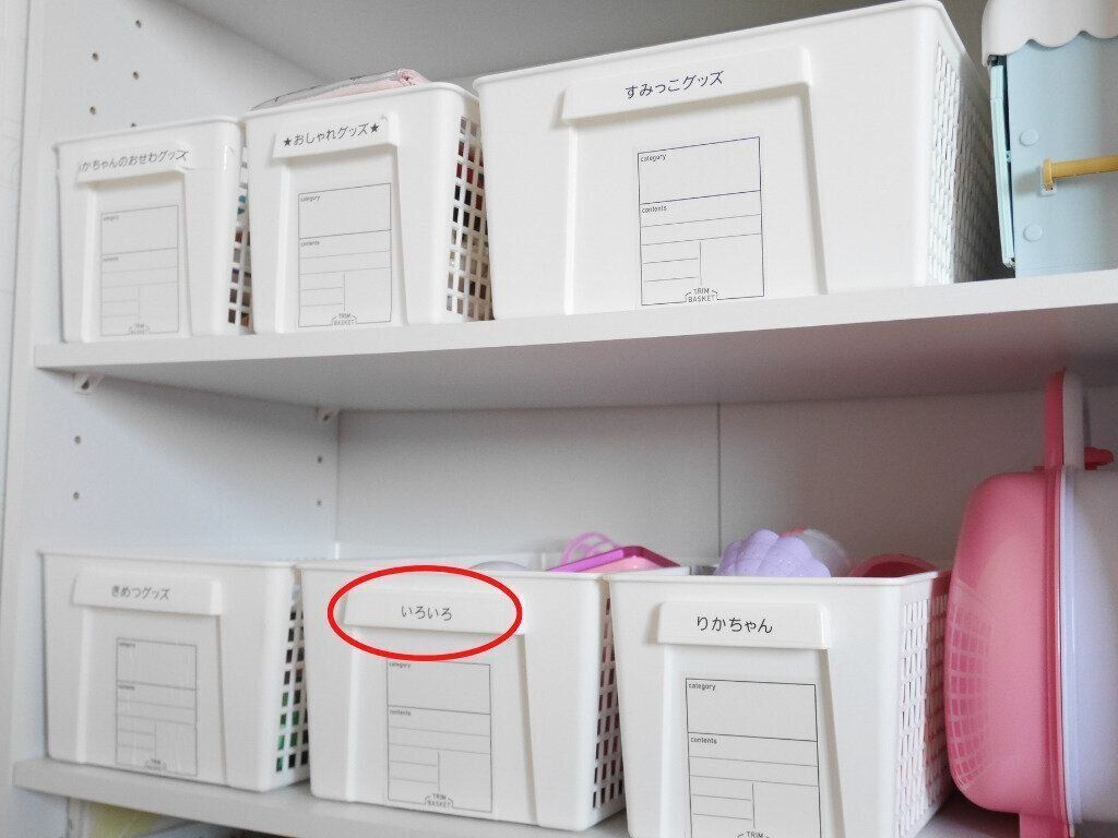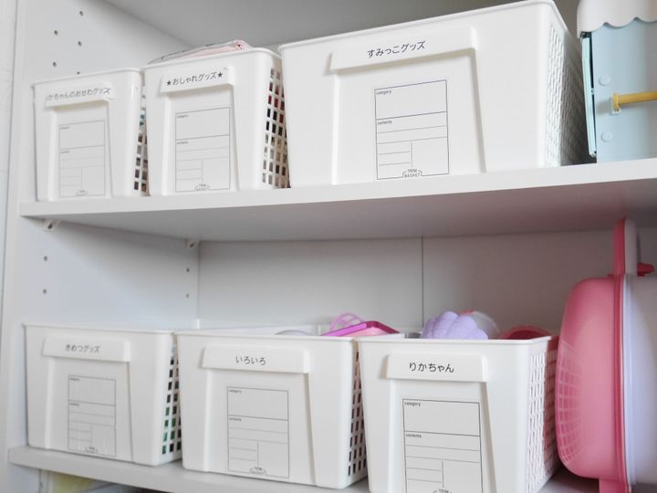 ラベリングすることで、出したおもちゃを片付ける場所が分かり、複数の種類のおもちゃが混ざり合ってごちゃごちゃになることを防げます。
