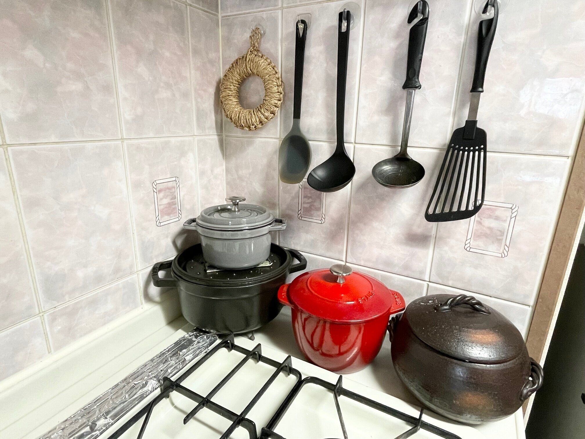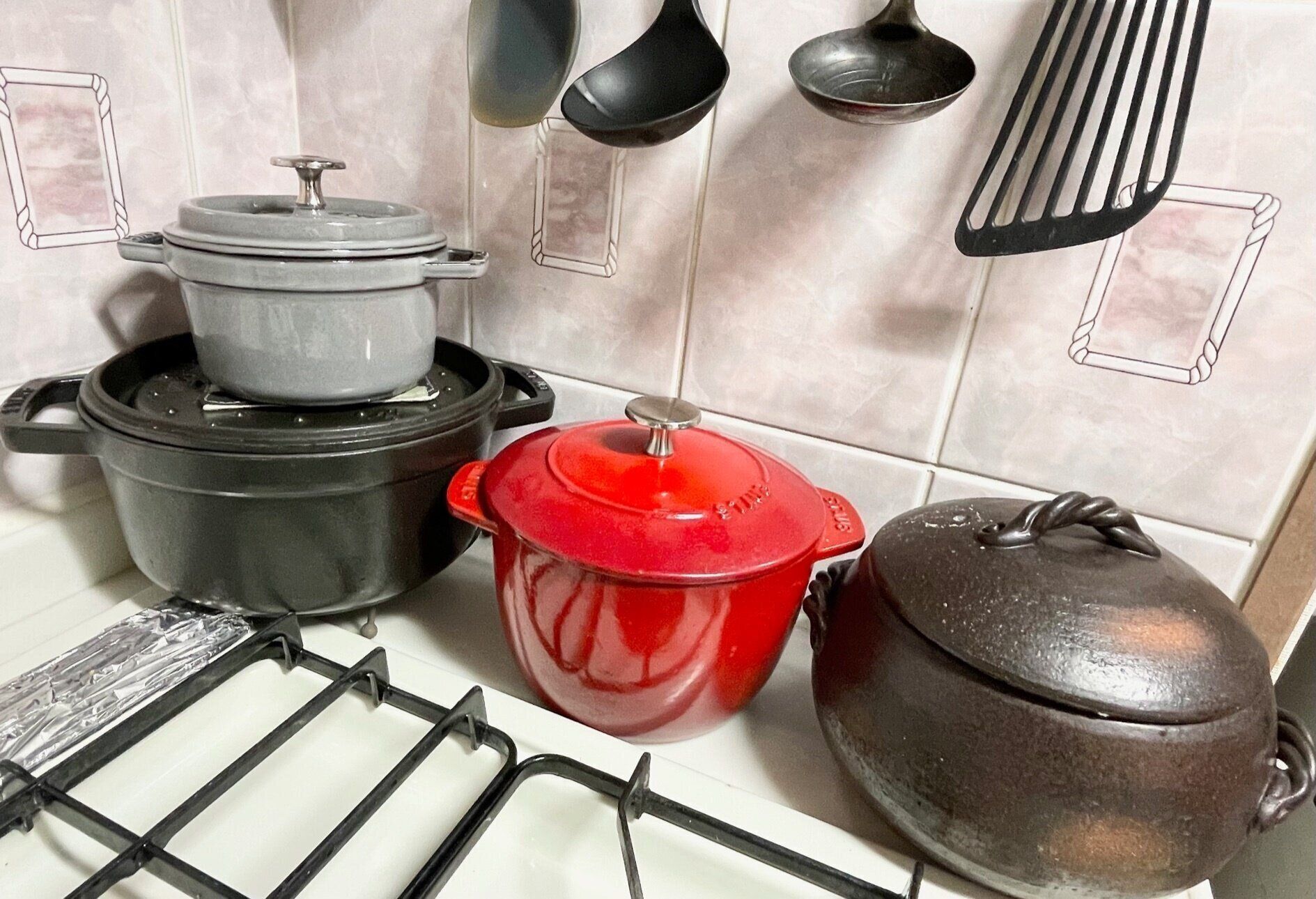 私が使っているのは、フランス製鋳物の「ストウブ」の鍋。この鍋のファンなので、いつも見えるところにあるのはテンションが上がるのです!