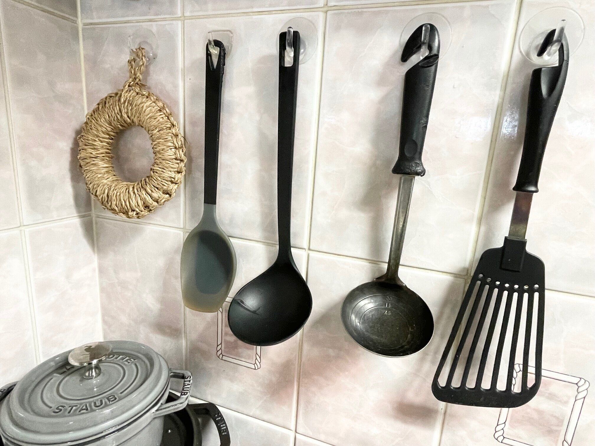 お玉やフライ返しなど、毎日必ず使うキッチンツールは、しまうよりも出しっぱなしの方が絶対便利。料理をしながら「今使いたい」というときに、サッと取ることができますよね。
