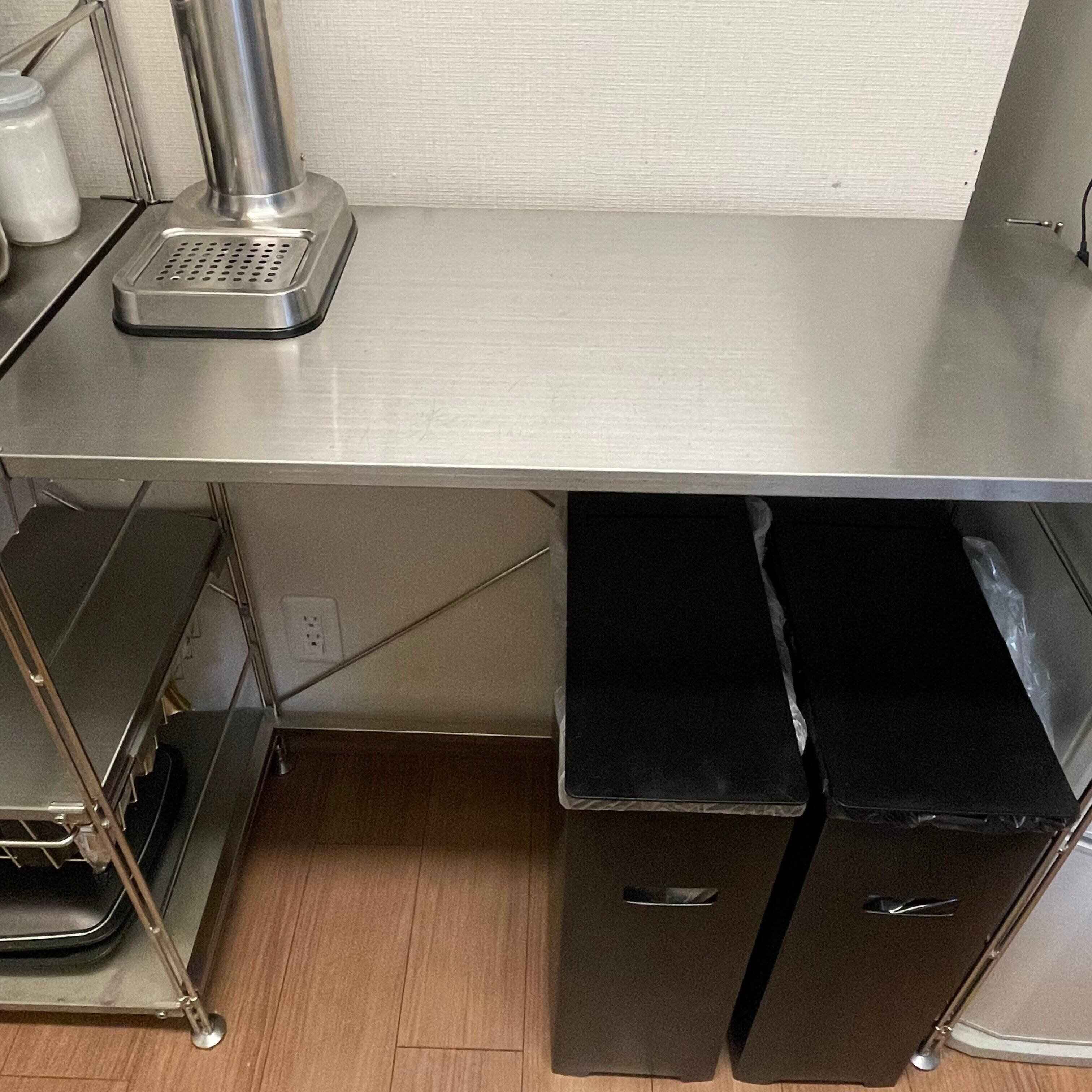 下のスペースを空けたことで、45Lサイズのゴミ箱も余裕をもって収まりました。
