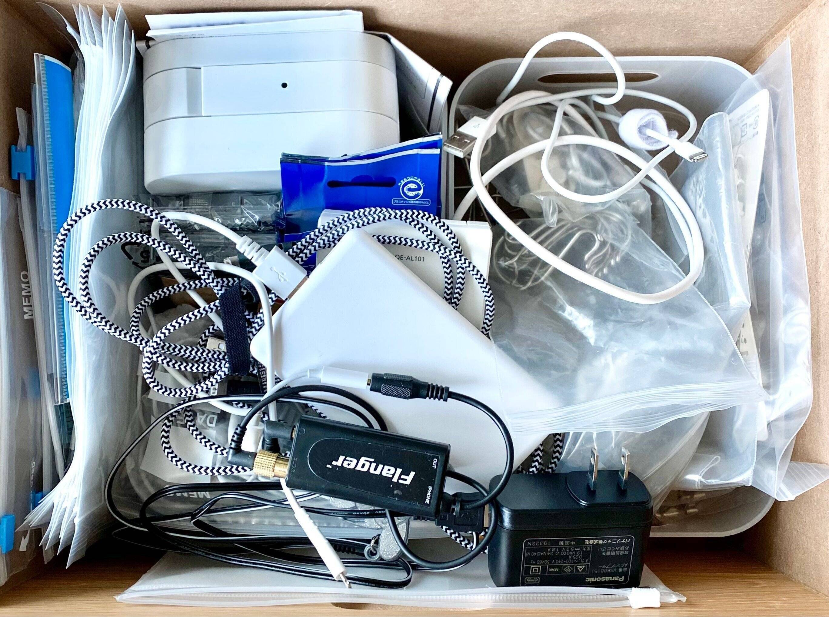 片づけをすると大抵見つかるのが大量のコード。そして、何のコードかよくわからないモノが大半なのです。一つ一つ見ていくと、すでに手放した家電のコードだったなんていうことも。