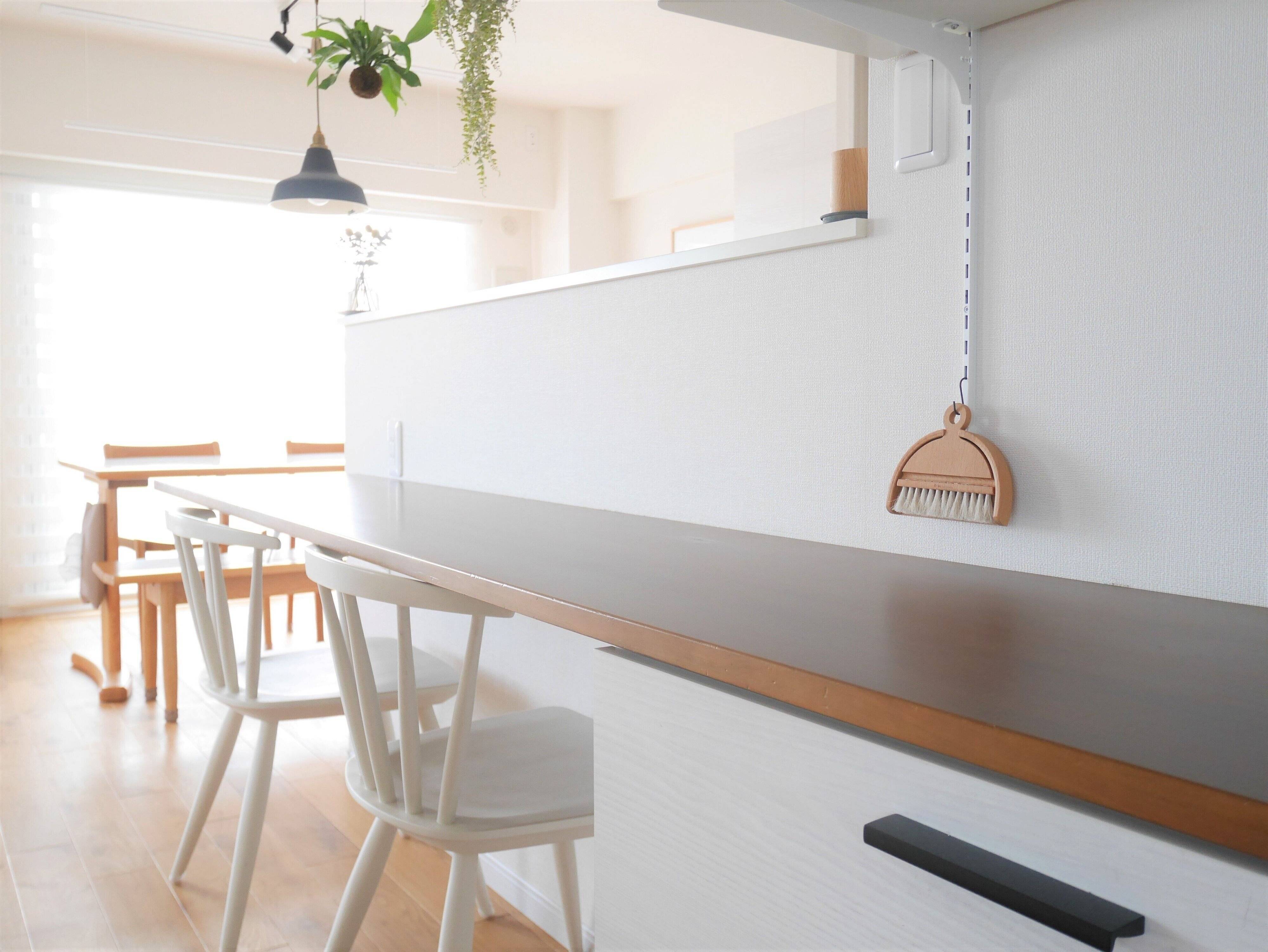 以前は気づいたときに私が掃除していたのですが、すぐ手に取れる場所に「小型のほうき&ちりとり」を設置したら、夫や子どもも掃除してくれるようになり、家事がラクになりました。