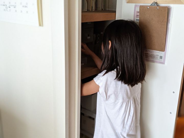ものの置き場を決めるときは、誰がよく使うのか?を考えて、身長に合わせた場所を検討します。子どもに出し入れしてほしい場合は、子どもの手の届きやすい位置に。子どもに使ってもらいたくないものは、大人だけが届く場所に定位置を決めます。