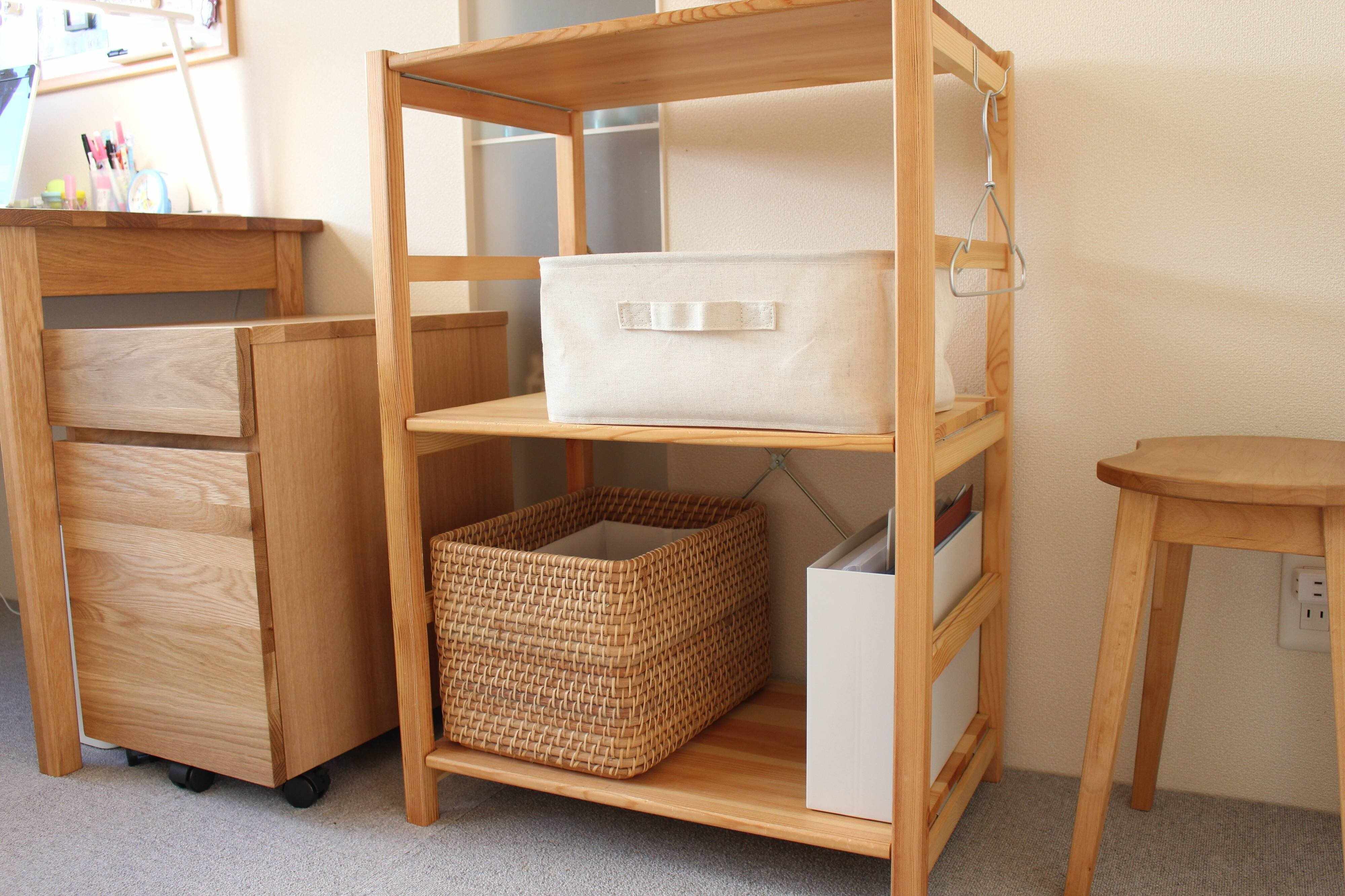 時間がない登校前、疲れて帰ってきた放課後、二階に上がって戻しに行くのが面倒な時、そんな時でも何となく片づくありがたい収納の味方です。