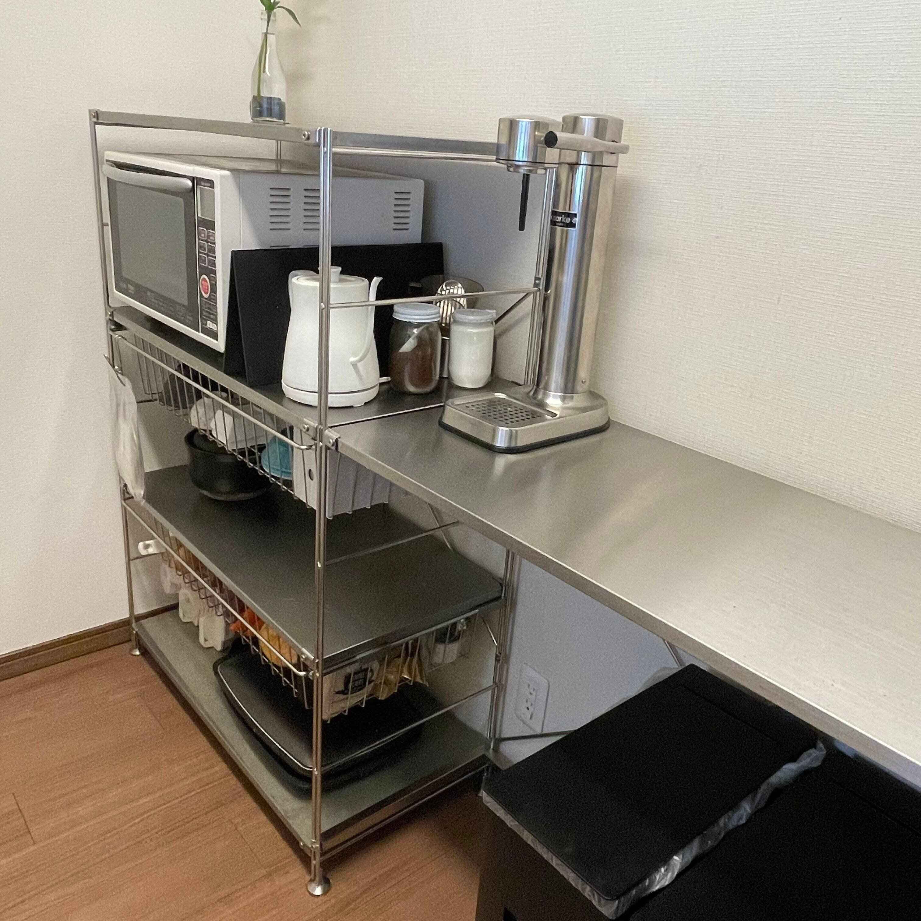 カウンター面積が広がればそれだけ物を置いてしまいがちです。とはいえ、全く無くしてしまっては、作業効率も悪くなります。