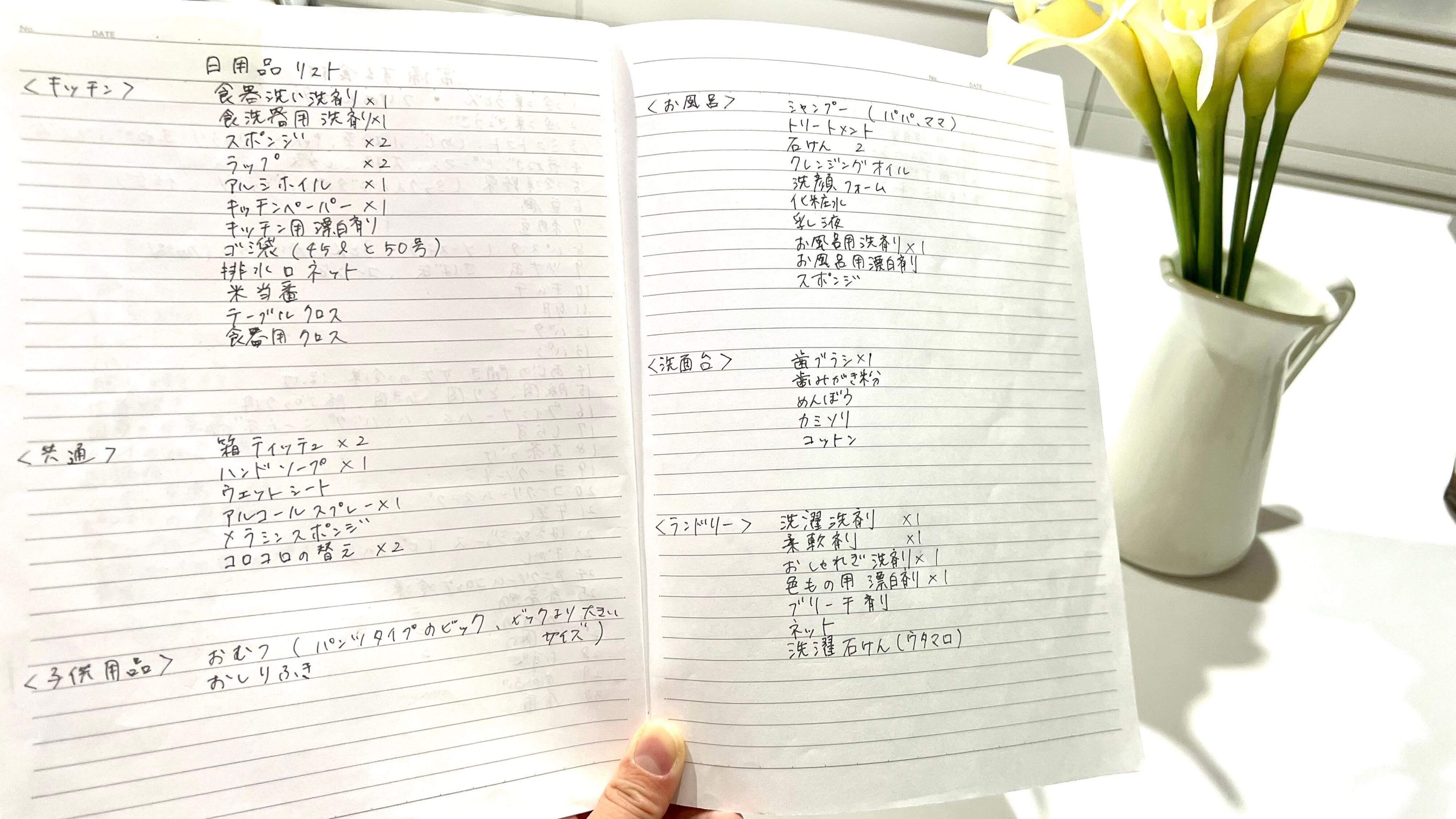 1、必要な日用品を書き出してみましょう