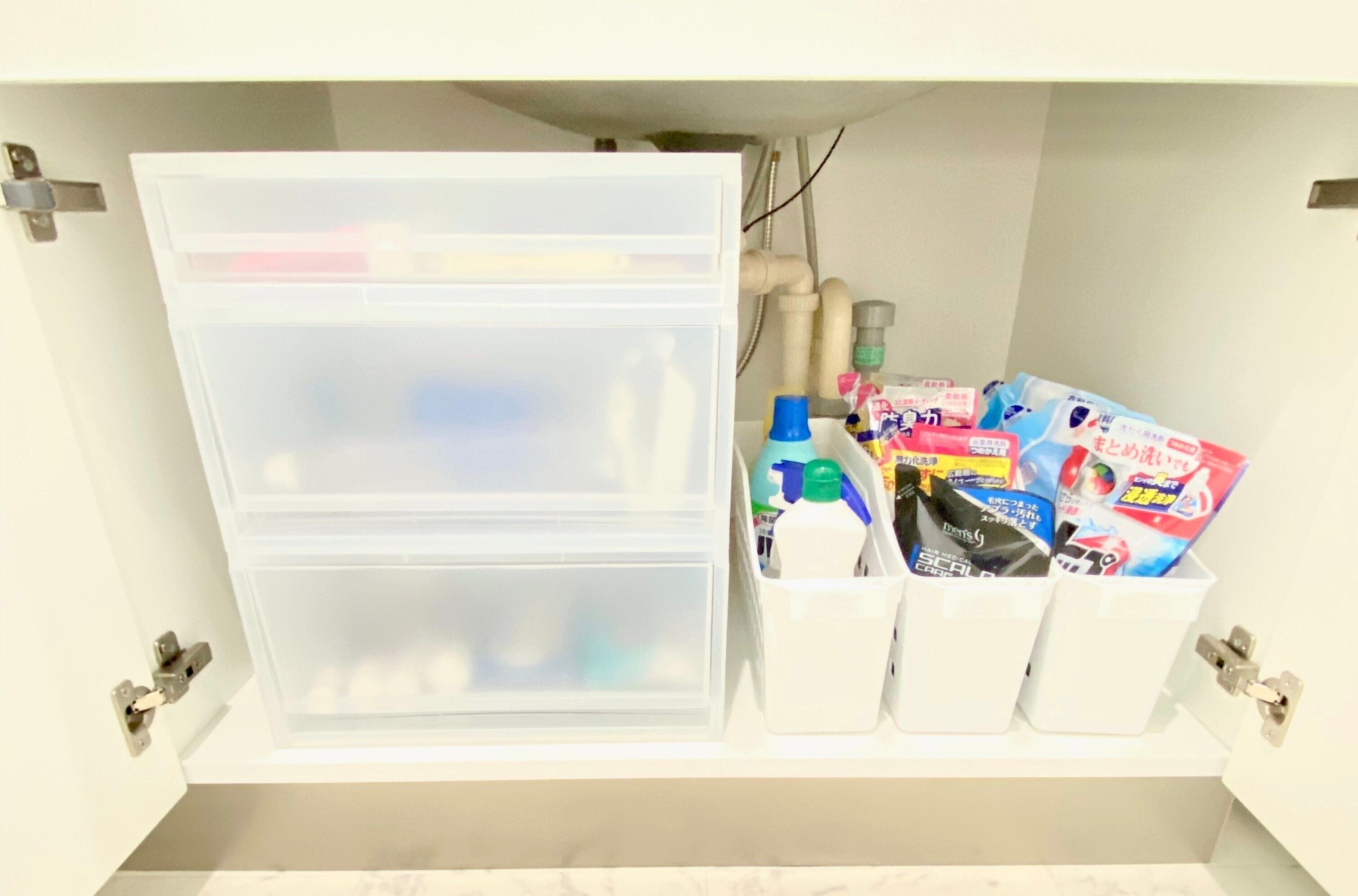 ライフスタイルや家族の人数で、ストックの数は違って当然かと思いますが、洗剤などが収納に入り切らず床置きしてしまうことがあれば、一度見直しをかけてみましょう。
