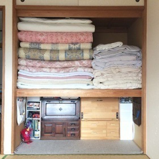 押し入れの仕切りを活用した収納を行なっているのはサンキュ!ブロガーjunkaさん。上段は布団の収納用として、下段はおもちゃなどの収納+子ども3人のプライベート用として、うまく空間をつくり出しています。