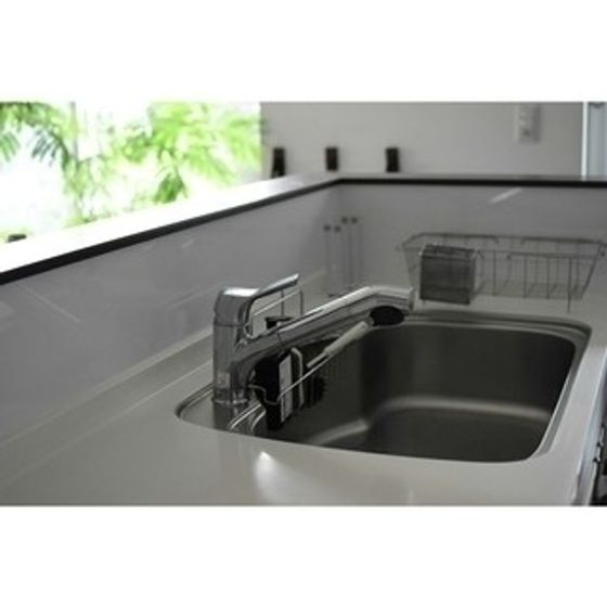 シンプルでスッキリとした印象のサンキュ!トップブロガー根本美穂さんのキッチン。コンパクトサイズの水切りカゴを使うことでムダな洗いものも減りました。いつ見ても気持ちがよく、朝起きてすぐに朝食の準備に取りかかれるメリットもあるそうです!