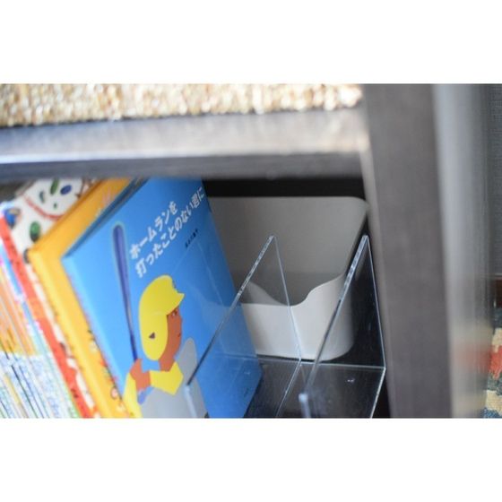 カラーボックスに絵本を収納する場合、奥に入り込みすぎたりサイズがマチマチなので、子供がしまうときもバラバラになってしまうのがネック。