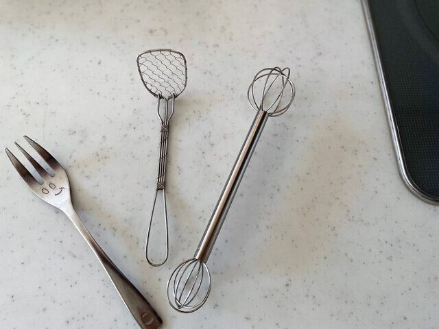 でも、片づけ上手さんは、ココでは思いついてすぐに買わずに、他のもので代用できないかまず考えます。マッシャーを使わなくても大きいフォークの背でつぶすこともできますね。