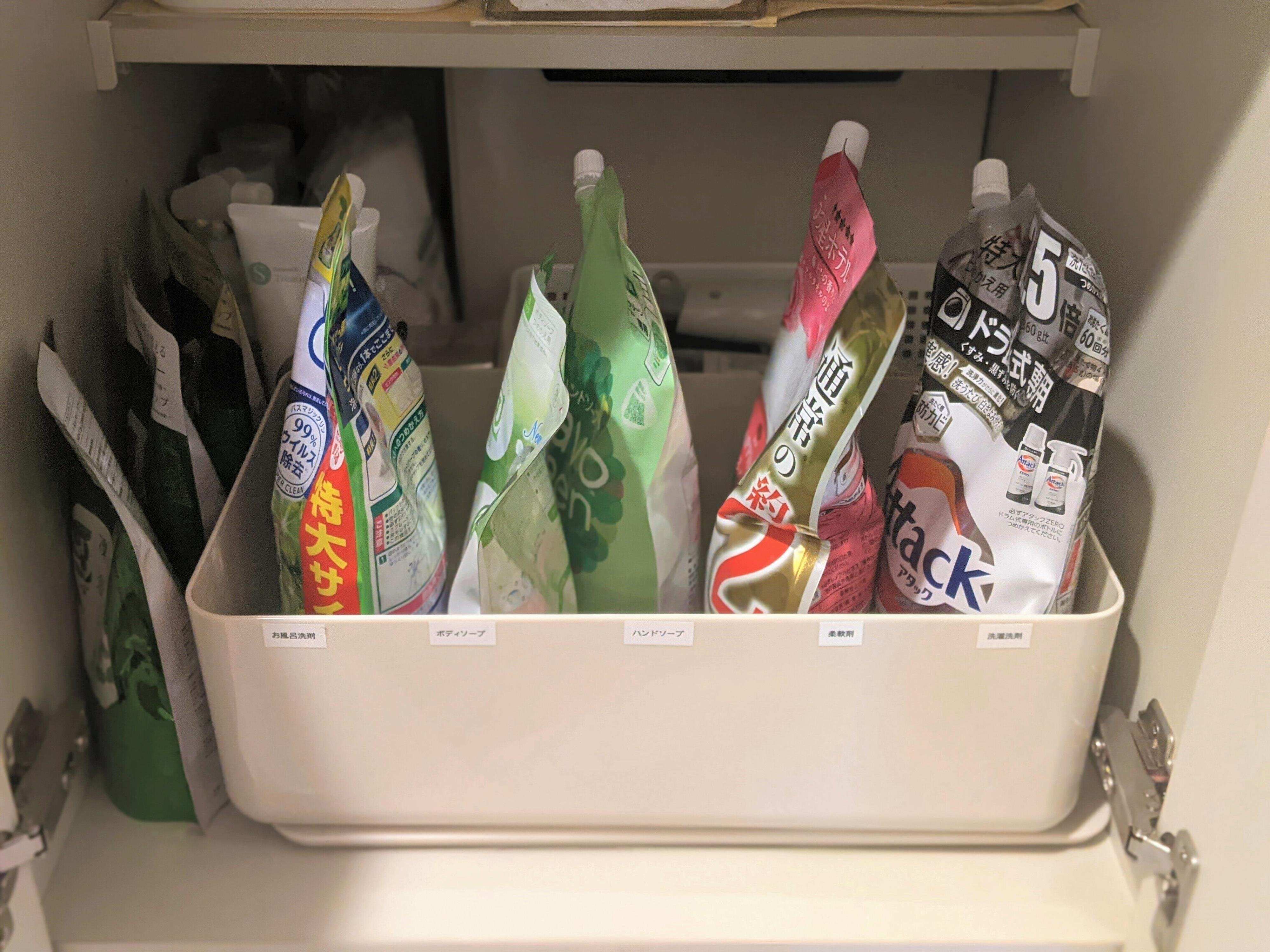 以前、ストック用の歯ブラシ、綿棒、もらったシャワーキャップなどいろいろな種類のモノを1つの収納グッズにどんどん入れてしまい、あふれていたことがありました。