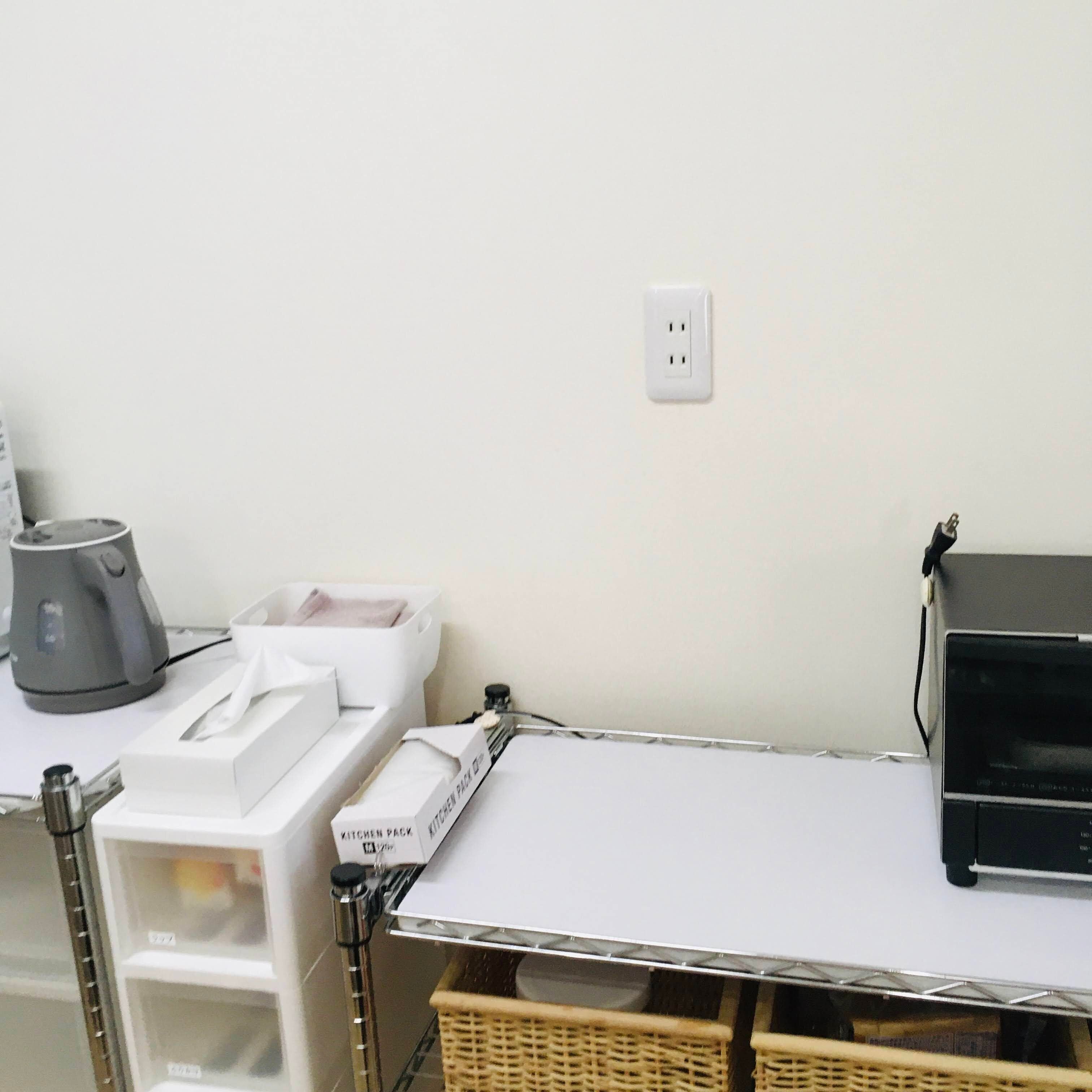 毎朝大活躍のトースターとケトルですが、抜いた後の電源コードの行き場がなくラックにダラーンと垂れ下がった状態でした。