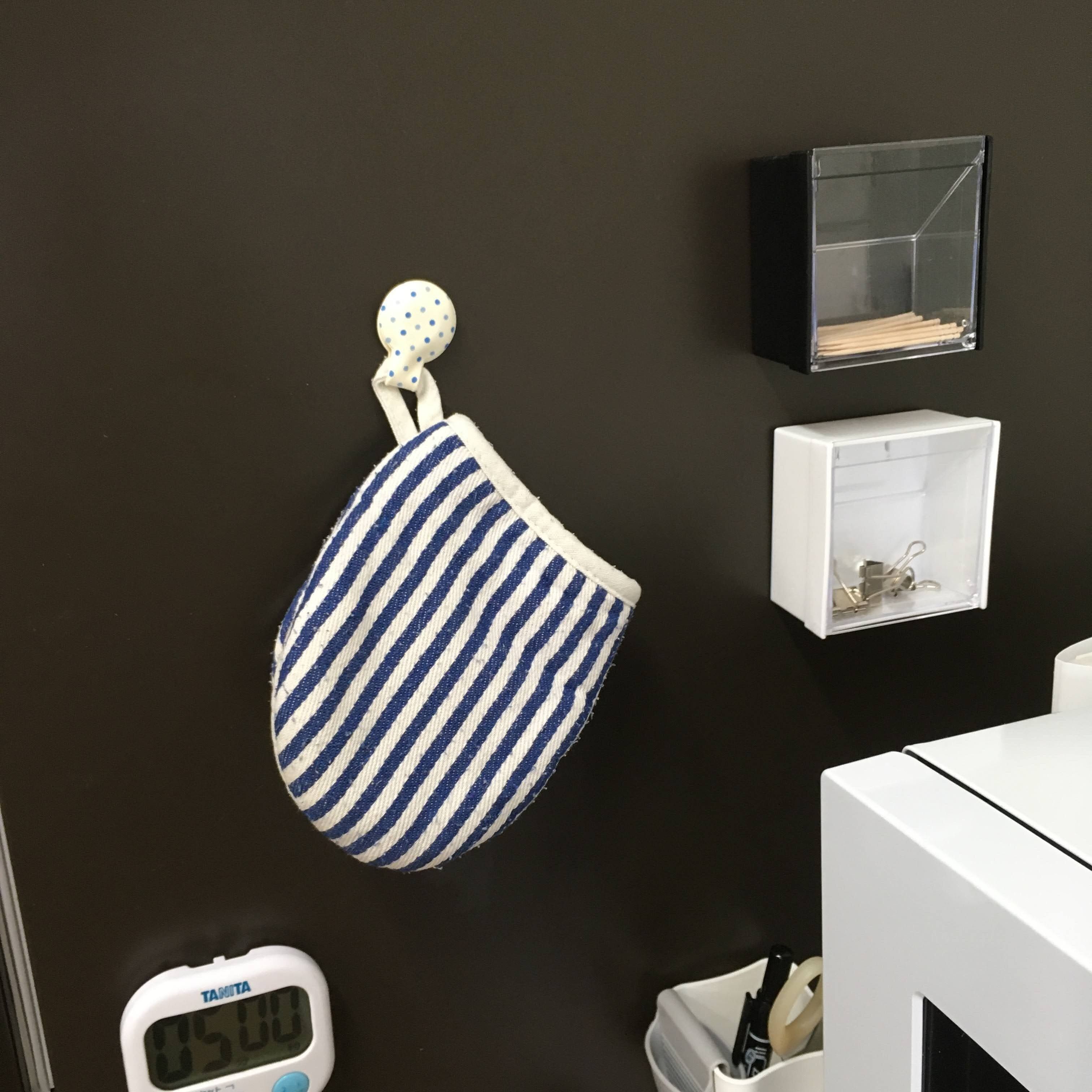 鍋つかみはよく使いますが、ループをフックに引っ掛けるのが面倒で、子どもたちが使うといつも置きっぱなしになっていました。
