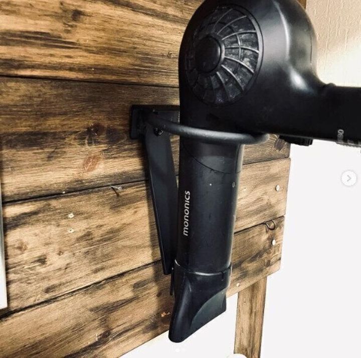 ドライヤーを引っかけるホルダーを壁に設置するアイデア。ホルダーの色をドライヤー本体の色と合わせると目立ちにくくなります。ドライヤーをここに引っかけるだけなので、収納も楽に。ぜひ参考にしてみてくださいね。