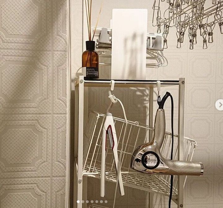 ドライヤーとアイロンをラックにかけて並べて収納!
