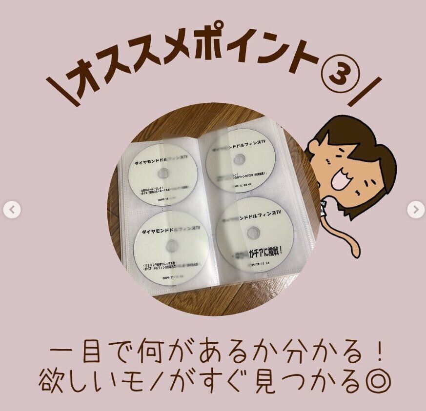 こちらは、無印良品のポリプロピレンCD・DVDホルダー・2段を使った収納アイデアです!80ポケットつきで、これ1つで40枚たっぷり収納できますよ。CDケースに入っていると取り出すのも大変ですが、これなら見やすく取り出しやすく、一目で何があるかわかりそうです。シンプルなデザインも人気ですよ。