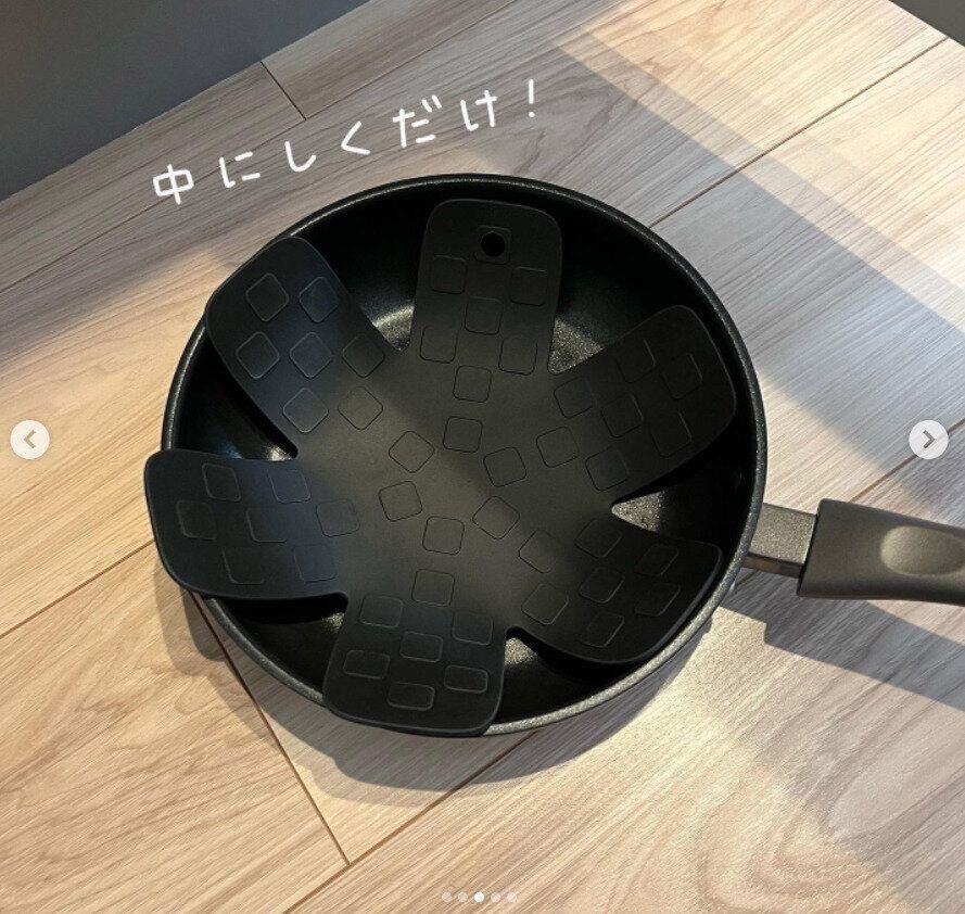 フライパンを重ねて収納したいけど擦り傷が気になる…というときにぴったりの、ダイソーのフライパンプロテクター。フライパンのなかに敷くだけで傷から守ってくれるので、安心して収納できます。すべり止めにもなるので大きめのお鍋の収納にも◎。収納の可能性が広がる素敵なアイデアです。
