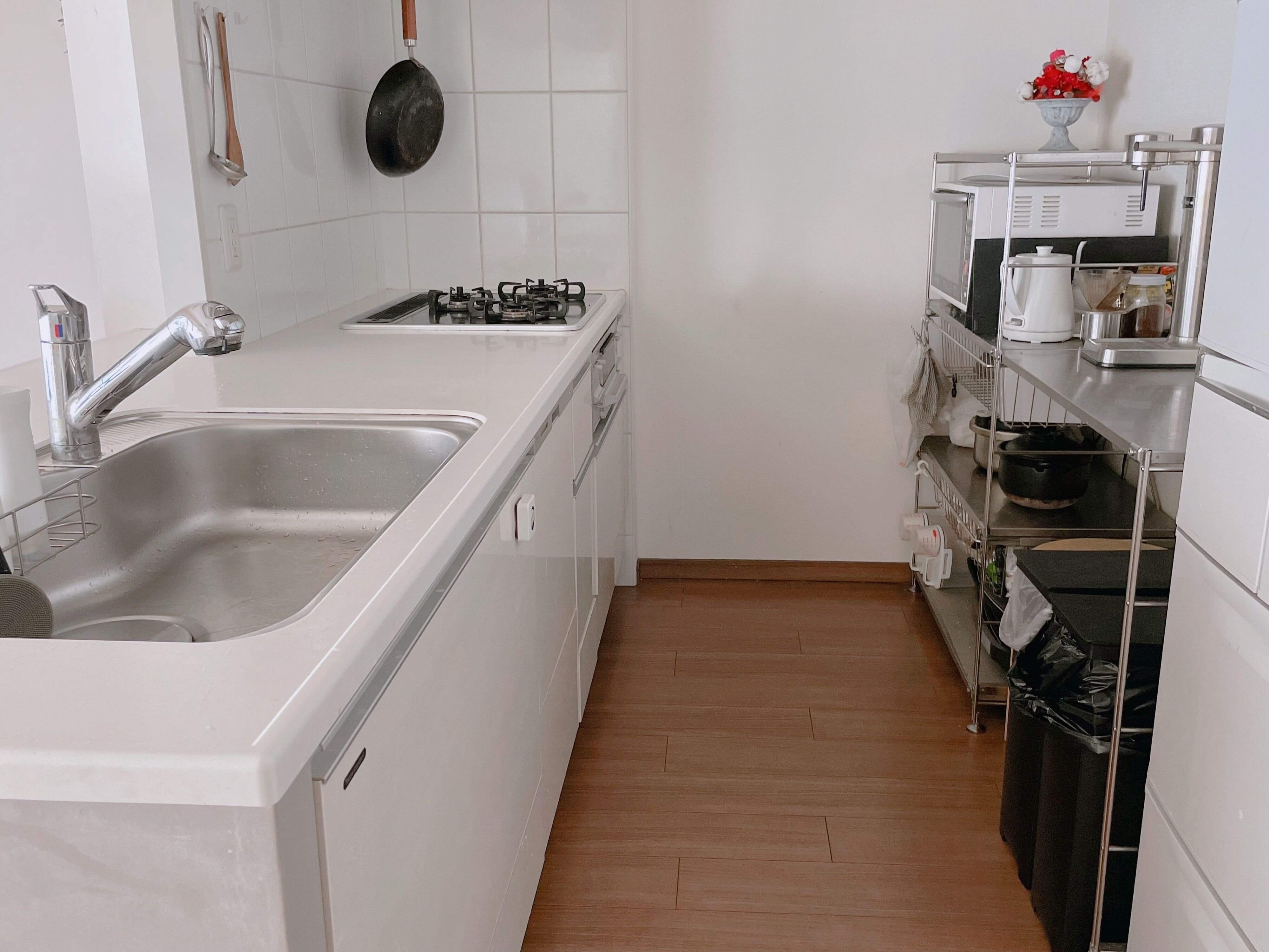 キッチンにおいても、調理用品を過度に持たないこととシンプル収納にすることで、誰でも使いやすいキッチンを意識しています。そのおかげか、以前より夫がキッチンに立つ時間も増えました。