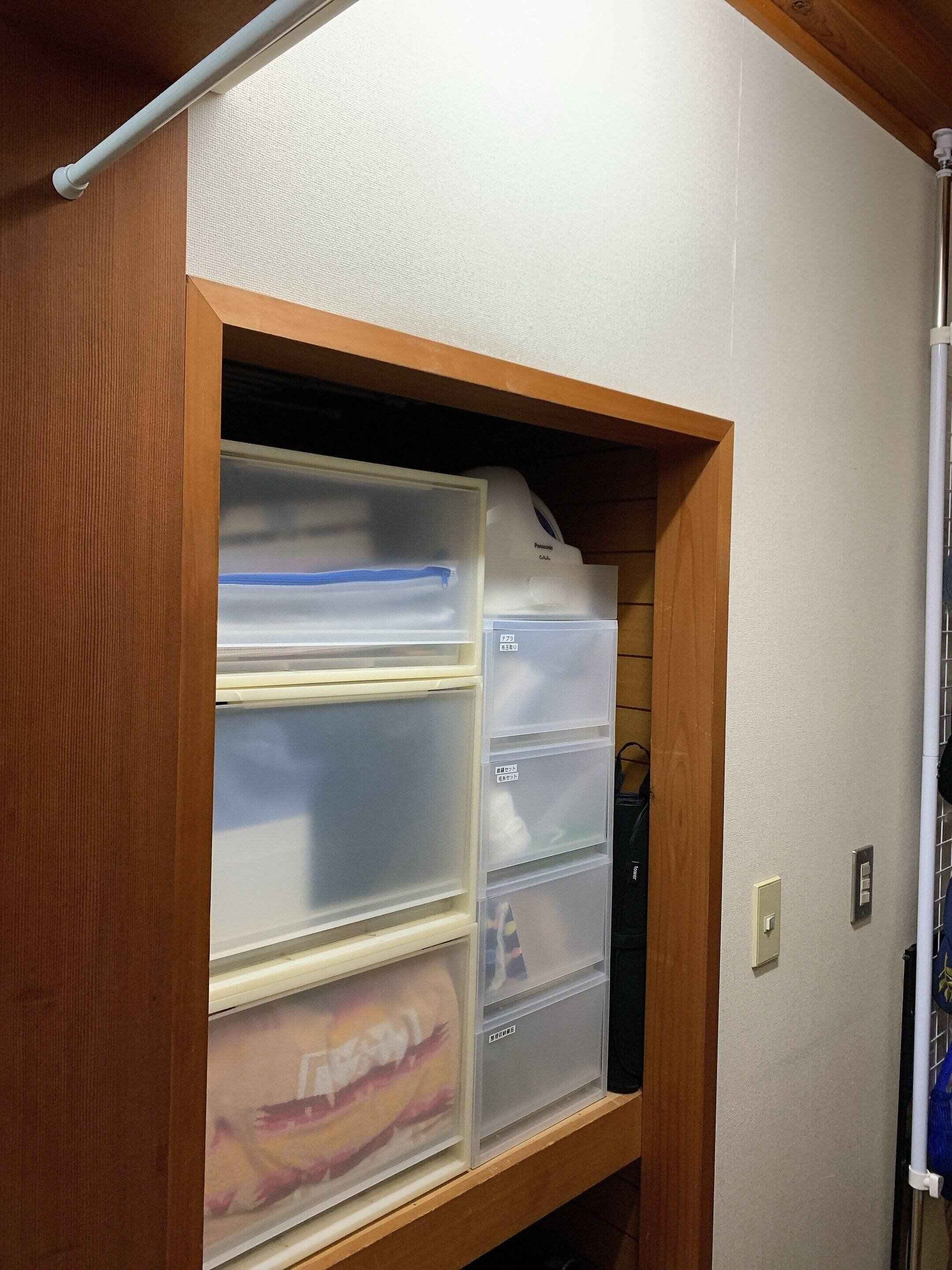 収納場所はこちら。寝室の押入れスペースの隙間に収納しています。
