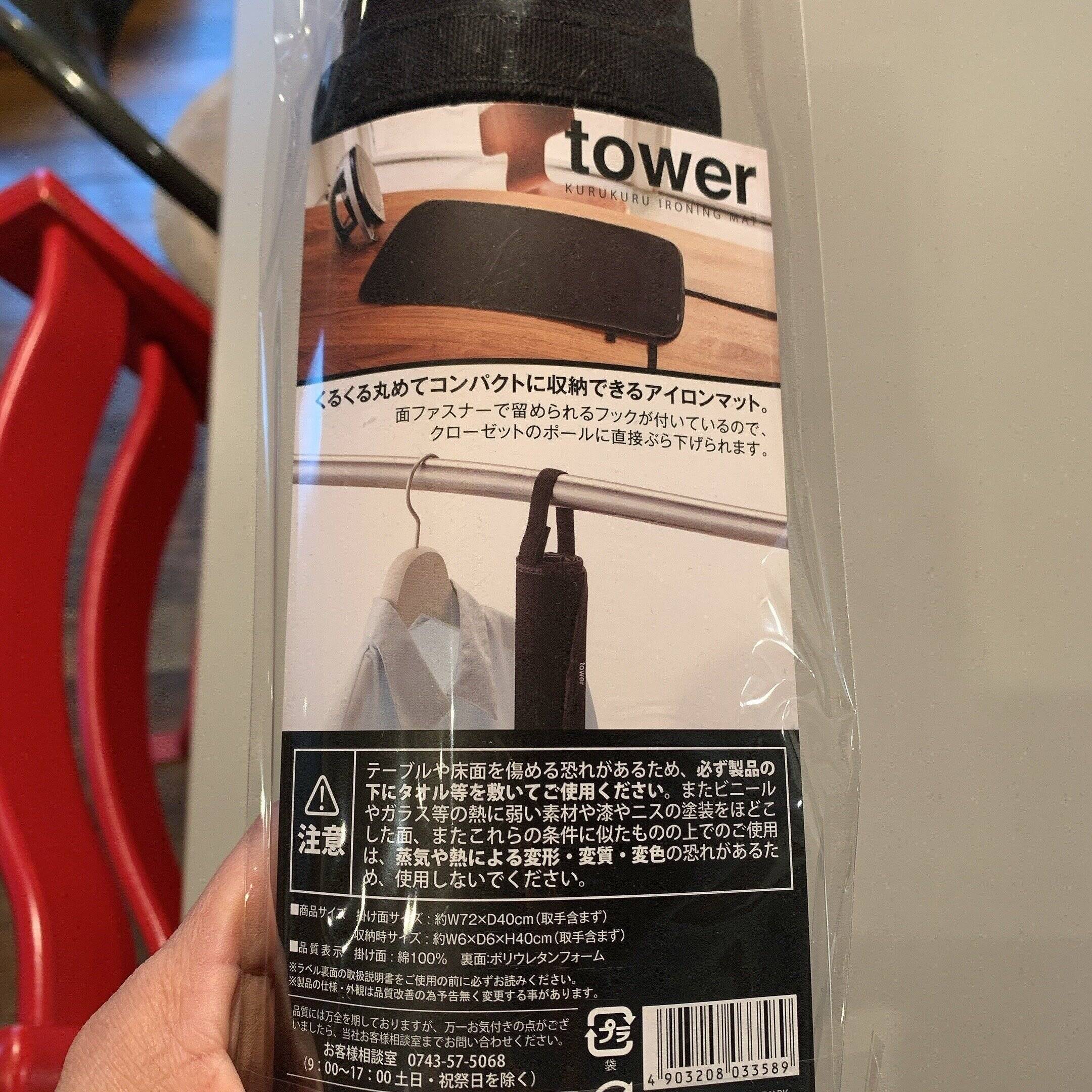 山崎実業のくるくるアイロンマットです。我が家が購入したのは「BLACK」ですが、「WHITE」もあります。