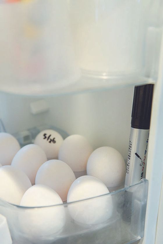 冷蔵庫は食品を保存する場所ですが、油性ペンも一緒に収納しておいて。消費期限がさっと記