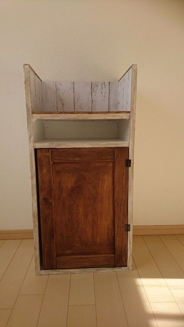 サンキュ!ブロガーmikoさんはニトリのカラーボックス×ダイソーのリメイクシートでランドセル置きを製作しました!自宅に余っていた木材を使用し天板や扉も作り見た目もスッキリナチュラルに。一番上の部分にランドセルを置く予定だそうです。