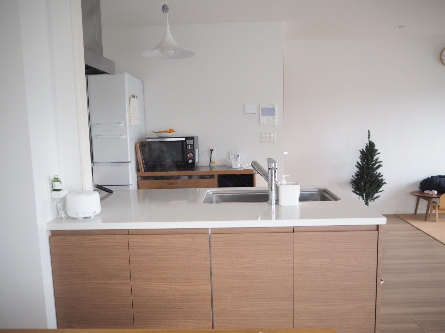 キッチンもスッキリとしました。油汚れや水はねなどで汚れてしまいがちなキッチンもモノを少なくすることで日々のお手入れも簡単になりそうです。