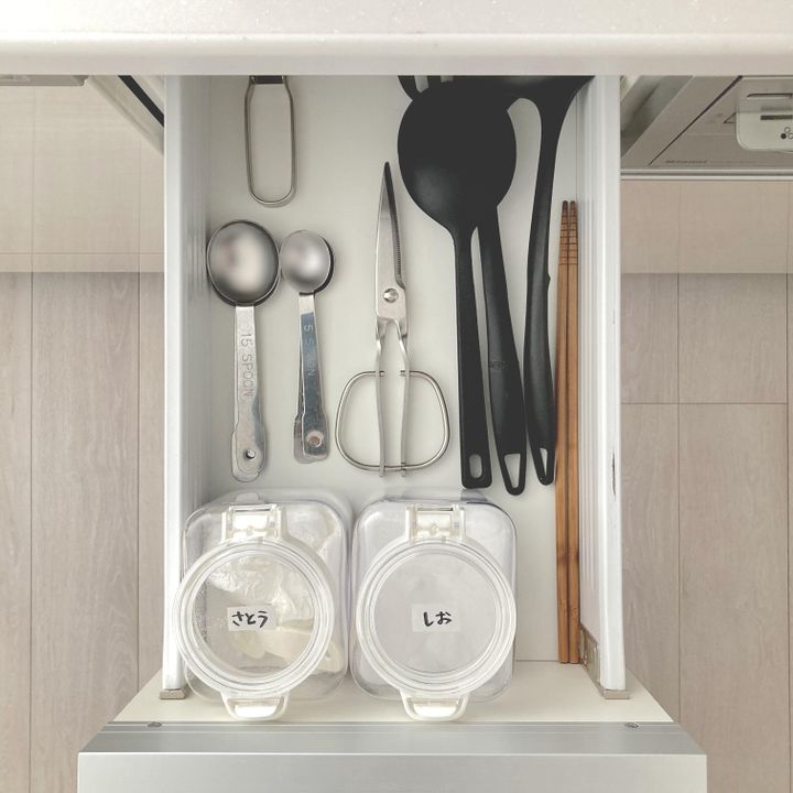 カトラリーなどものによっては使用していますが、よく使う調理道具やフライパンなどは直置きです。