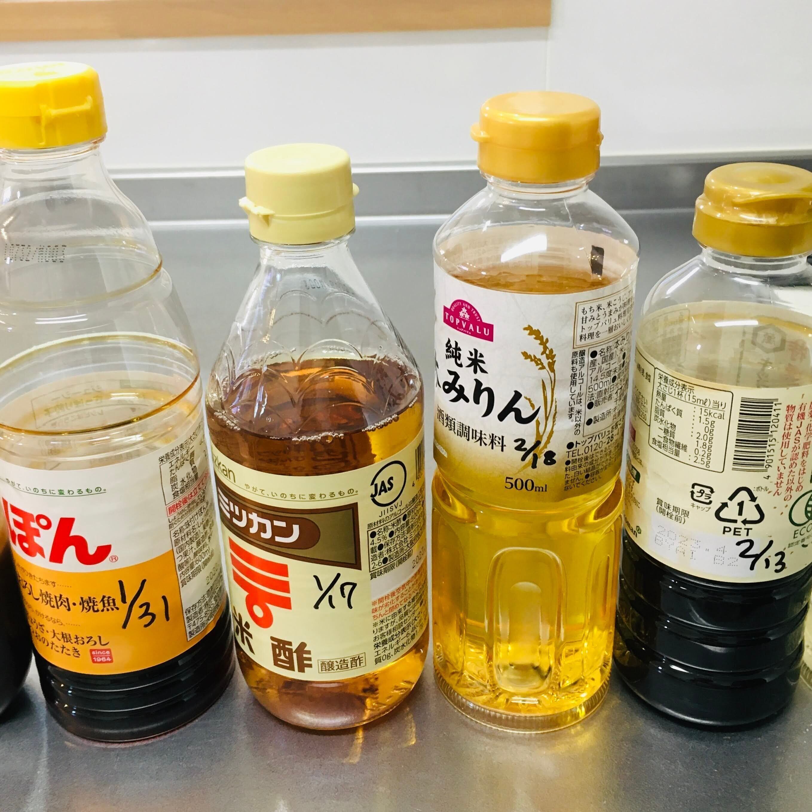 調味料は「開封後はできるだけお早めにお使いください」と書かれていることが多いですよね。醤油、みりん、酒などは割高でも小さめのボトルを購入して、1か月以内に使い切ります。