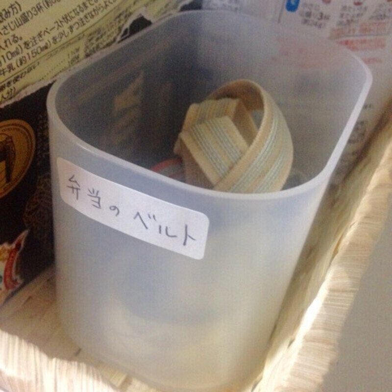 使う時にさっと出したいお弁当箱用のゴムベルトは、こちらにまとめて収納しています。