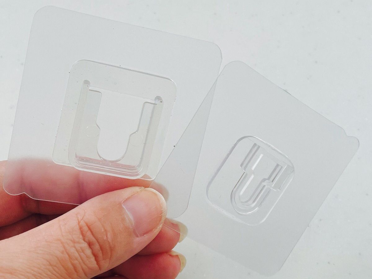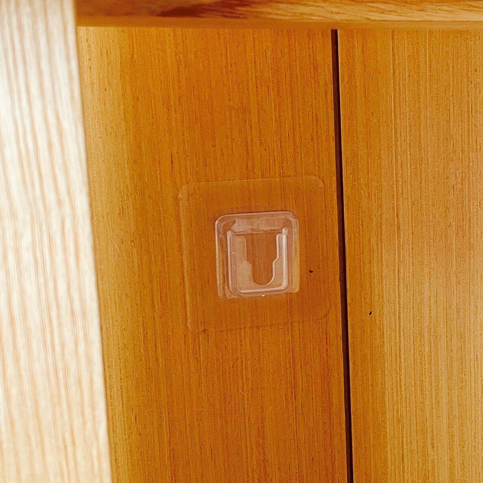 実はこのフックは耐荷重1.5kgと少々重いものでも浮かせることができるので持っていると便利ですよ。万が一落ちても破損しないモノを収納してくださいね。