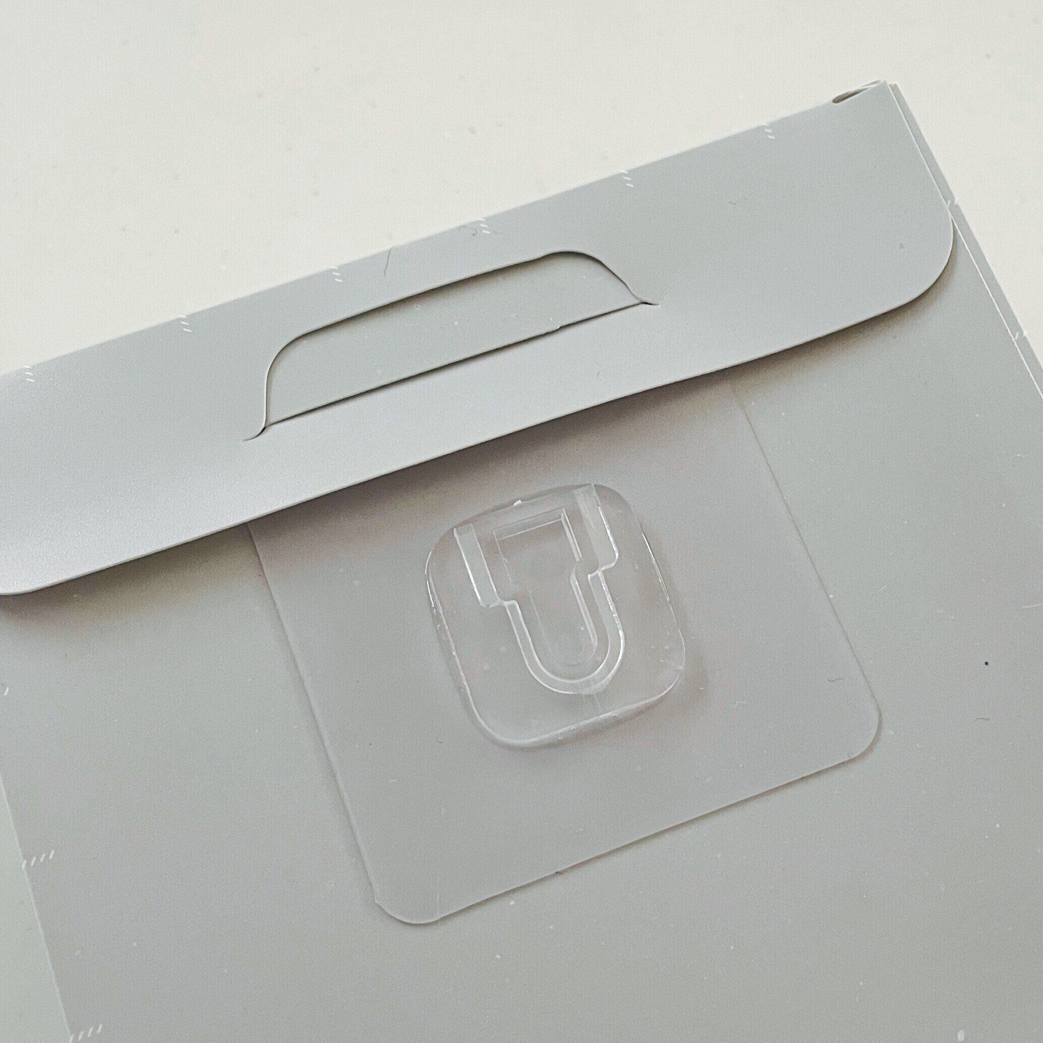 ティッシュをケースに入れた後、凸フックをケースの裏に貼り付けます。