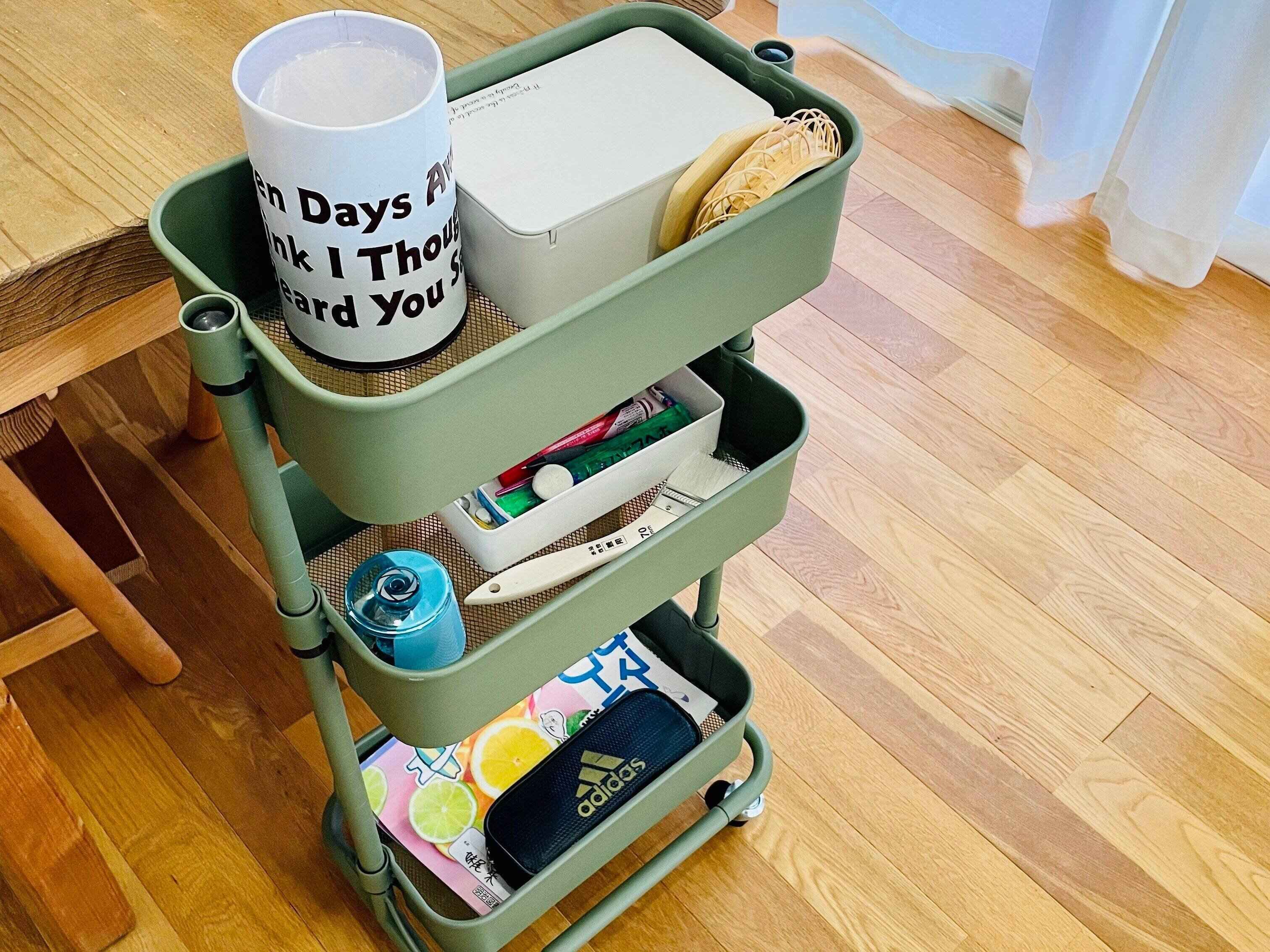 また、宿題をする場所の近くに、文房具や鉛筆削り、ミニゴミ箱を入れたワゴンを置いたのですが、これが毎日大活躍!