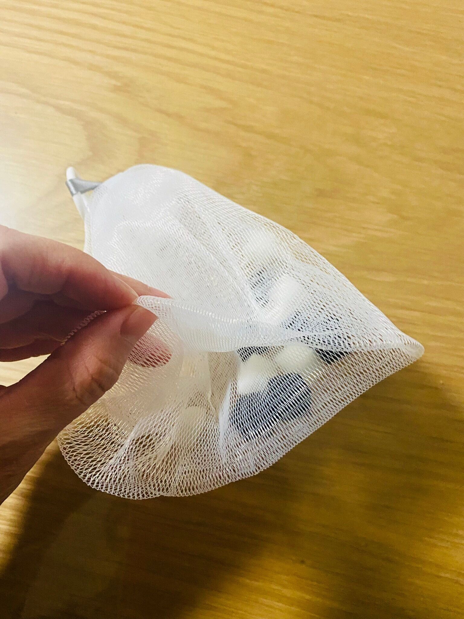 こちらの商品もSNSで気になっていたもの。通常の泡立てネットとはちがい、ネットの中に小さなスポンジが入っているのが特徴です。